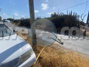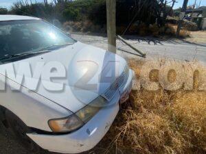 Diaranson atardi a drenta informe di un accidente na Catiri, mesora a dirigi un patruya na e sitio. Na yegada di e patruya a bin compronde cu aki ta trata di un accidente unda e chauffeur di un Nissan Sentra mester a baha for di caminda pa evita impacto cu trafico contrario pero ela baha den un monton di santo cu no a laga e chauffeur maniobra pa bin bek riba e caminda y a bay dal un “steundraad” cual tabata wanta un palo di sosten y a kibra esaki den dos y nan a bay cay riba caminda y ningun auto no por a pasa. Mientras e truck mes a sigui core bay.Afortunadamente ningun hende a resulta herida.