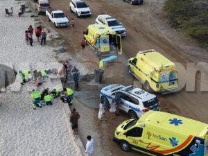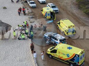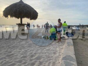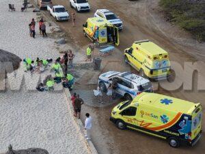 Diahuebs atardi a drenta informe di cu tin un turista cu problema den lama na Arashi, mesora a dirigi tanto polis como ambulans na e sitio. E situacion a cuminsa cu un persona cu “rubberboat” compañando durante e trip den catamaran a mira mannan ta zwaai den lama na un distancia basta leu for di costa y a sali bay mientras a bati alarma. Na yegada di e ambulans a bin compronde cu 2 dama hulandes tabata snorkel den lama y e biento fuerte cu e coriente di lama a hibanan basta leu. E un boto a trese un persona cu problema leu den lama y mester practica C.P.R. mesora na e beach a cuminsa practica C.P.R. mientras esun cu e boto a laga nan ta purba yuda e dama ela sali bay busca un otro persona cu tambe ta den lama esey segun un kite surfer den lama cu a mira e otro muher na un distancia separa for di esun prome y a lant’e trese tera tambe. Una bes cu ela yega na canto voluntarionan y mas polis cu ambulans tambe a yega y a yuda e dama aki tambe. Despues di a practica C.P.R. e di 2 dama a cuminsa reacciona y a transporte mesora pa hospital. Lamentablemente e prome dama no a logra ser salba y un poco mas laat Dr. Voskuil a constata morto di e dama hulandes di 53 aña, Na famia di e fayecido ta bay nos mas sincero palabranan di condolencia.