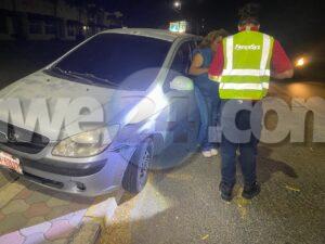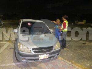 Dialuna madruga a drenta informe di un accidente dilanti Cayena Mall, mesora a dirigi un patruya na e sitio. Na yegada di e patruya a bin compronde cu aki ta trata di un accidente unda un dama chauffeur burachi coriendo un Hyundai Getz biniendo for di Sero Blanco a yega subi Caya G.F. “Betico” Croes sin a para pa wak trafico y a bay dal riba e Honda Fit bayendo pariba. Afortunadamente ningun hende a resulta herida. Polis mirando cu e dama ta burachi y ni por a supla drecha na e “alco-sensor” a detene. Vehiculo di transporte a bin busk’e pa hib’e warda di polis.