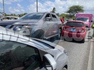 Diaranson atardi a drenta informe di un accidente cu hende herida na Ponton, mesora a dirigi tanto polis y ambulans na e sitio. Na yegada di e patruya a bin compronde cu un dama chauffeur di un Nissan Pathfinder cu un cacho chikito den scochi a bira malo tras di stuur y a bay dal riba 2 auto contrario. Polis a pidi ambulans pa e dama cu lo a bira malo y a accidenta. Na yegada di e ambulans nan a atende e dama na e sitio mes. Afortunadamente ningun otro hende a resulta herida.
