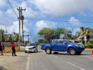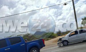 Diadomingo atardi a drenta informe di un accidente banda di Weng Kee na Piedra Plat, mesora a dirigi un patruya na e sitio. Na yegada di e patruya net e pleitamento y discucion a caba. Aki a bin compronde cu ta trata di un accidente unda un auto a brake laat slip bay dal tras di e pick-up cu tabata birando. Afortunadamente ningun hende a resulta herida.