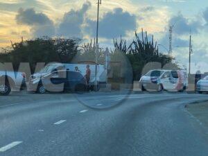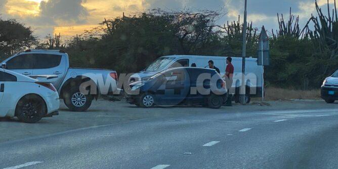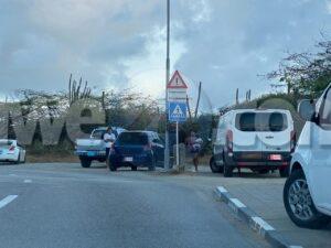 Diadomingo atardi a drenta informe di un accidente banda di e rotonde di Hato, mesora a dirigi un patruya na e sitio. Na yegada di e patruya a bin compronde cu aki ta trata di un accidente pa falta di preferencia. Afortunadamente ningun hende a resulta herida.