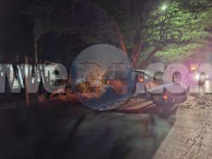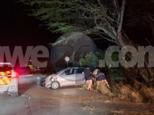 Diaranson anochi a drenta informe di un accidente pariba si airport, mesora a dirigi un patruya na e sitio. Na yegada di e patruya a bin compronde cu aki ta trata si un Toyota Vitz yegando e birada pariba di airport a perde control y a bay dal riba un troncon di mata. E impacto tabata fuerte y cu hopi daño material pero afortunadamente ningun hende a resulta herida.