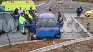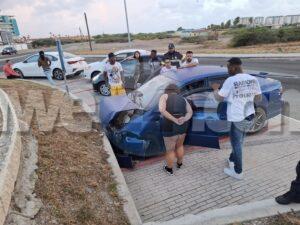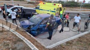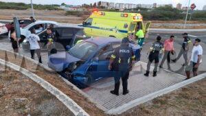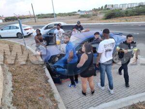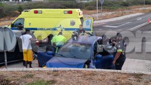 Diadomingo mainta a drenta informe di un accidente cu impacto basta fuerte na rotonde banda di Superfood, mesora a dirigi tanto polis como ambulans na e sitio. Na yegada di e patruya a bin haya un Toyota Corolla cu lo a dal riba e muraya di e rotonde y den e auto 2 hende inconciente y herida. Locuala a sosode ta cu nan tabata yegando e rotonde cu demasiado speed y pa ora primi e brake ya e no por a para mas y a bay dal fuertemente riba e muraya. Na yegada di e ambulans nan a atende ambos victima y a transporta nan ppa hospital.