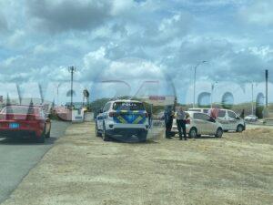Dialuna mainta a drenta informe di un accidente riba Sasakiweg banda di e rotonde, mesora a dirigi un patruya na e sitio. Na yegada di e patruya a bin compronde cu aki ta trata di un accidente unda cu e chauffeur di e Mustang no a regula su velocidad ni a mantene distancia a bay dal tras di e Nissan March. Afortunadamente ningun hende a resulta herida.