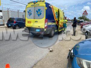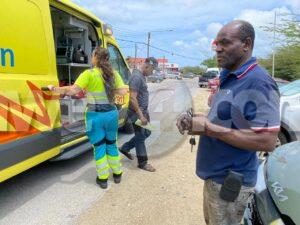 Dialuna mainta a drenta informe di un accidente cu hende herida dilanti di Hertz na Sabana Blanco, mesora a dirigi tanto polis como ambulans na e sitio. Na yegada di e patruya a bin compronde cu e mucha homber labador di auto di huur a caba di laba e auto y a bay reverse pa pone cla pa huur y ora ela sali for di e tereno net un peaton tambe a crusa y a dal e banda di su wowo y a resulta herida. Na yegada di e ambulans nan a atende y a revisa e wowo pero nada a afecta su bista na prome instante y a recomende bay oculista pa atencion adicional.