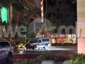 Diaranson madruga a drenta informe di un turista masculino agresivo y histerico den su camber di e hotel, mesora a dirigi un patruya na e sitio hunto cu e vehiculo di transporte di detenidonan. Na yegada di e patruya a bay na e camber concerni a topa e homber cu a sali trip bebe y ora a bolbe a bini histerico y tabata reclamando su pareha. Polis a purba papia cun’e p’e calma pero no a logra y no a keda nada otro cu bay warda ser’e den cel.