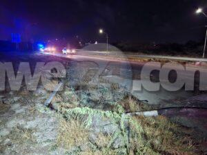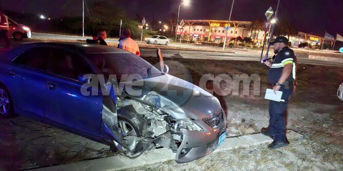 Diasabra madruga a drenta informe di un accidente panort di e rotonde banda di Superfood, mesora a dirigi un patruya na e sitio. Na yegada di e patruya a bin compronde cu aki ta trata di un chauffeur poco bebi bieniendo cu un Toyota Mark X for di Palm Beach yegando e rotonde a perde control baha caminda y a bay dal y ranca un palo di lus lagando wayanan di coriente riba caminda. Polis a sera e caminda pa trafico no pasa meymey di e wayanan. Ora a test e chauffeur ela supla un tiki riba e limite. Polis no a detene pero si a dun’e un boet. Afortunadamente ningun hende a resulta herida.