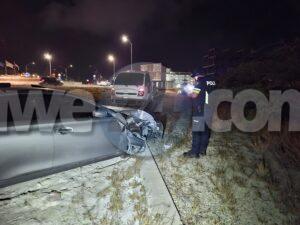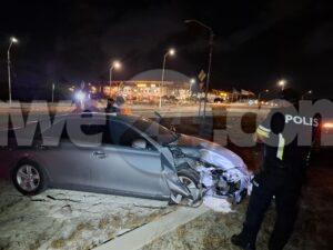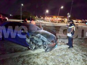 Chauffeur un poco bebi a perde control bay dal su Toyota MarkX riba un palo di lus lagando wayanan riba caminda