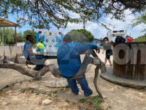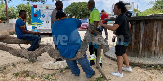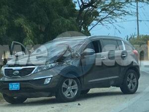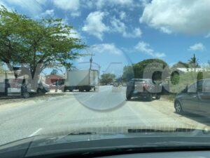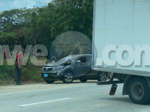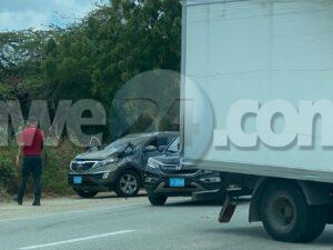 Dialuna merdia a drenta informe di un accidente cu hende herida dilanti Grand East Supermarket na Madiki, mesora a dirigi un patruya na e sitio. Na yegada di e patruya a bin compronde cu e KIA Sportage bayendo nort no a tene na cuenta den e birada tin un Supermarket y no a ripara cu e truck su dilanti tabata cla pa bira y e Sportage a bay dal fuertemente tras di e truck den e skina causando un impacto cu a laga e chauffeur como e ayudante cu dolor di lomba. Na yegada di e ambulans nan a atende ambos pero e chauffeur a ser hiba hospital pa atencion medico.