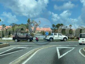 Diaranson mainta a drenta informe di un accidente na e rotonde banda di Sun Plaza, mesora a dirigi un patruya na e sitio. Na yegada di e patruya a bin compronde cu aki ta trata di un accidente unda un chauffeur no a regula su velocidad ni a mantene distancia a bay dal tras di esun dilanti. Afortunadamente ningun hende a resulta herida.