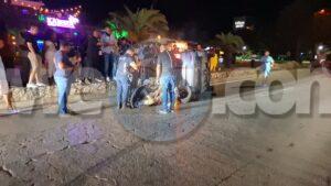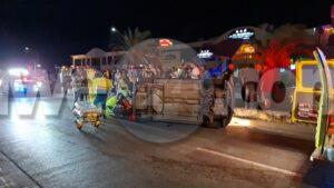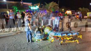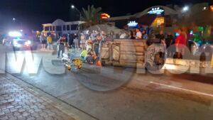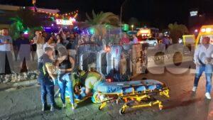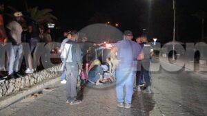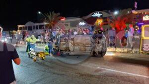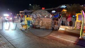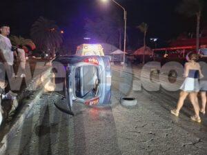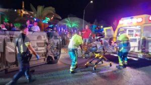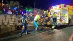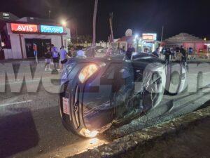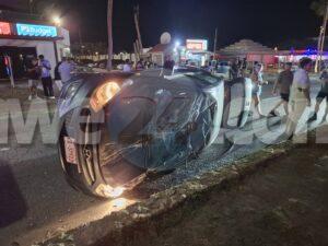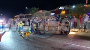 Diasabra madruga a drenta informe di un accidente cu hende herida dilanti Sopranos Piano Bar na Palm Beach, mesora a dirigi tanto polis como ambulans na e sitio. Na yegada di e patruya a bin compronde cu aki ta trata di un dama chauffeur saliendo for di e parkinglot e dama a wak auto ta bini y pa no dal’e a primi trot perde control subi acera cu piedra bay bolter meymey caminda. E auto a keda gekentel meymey caminda y e dama a resulta herida y tabata inconciente te ora cu ambulans a yega. Nan a pone bin bij y a transporte pa hospital.
