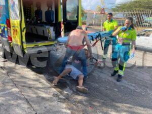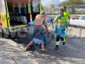 Dialuna mainta a drenta informe di cu un homber bebi lo a cay y a haya mal golpi na su curpa, mesora a dirigi ambulans na e sitio. Na yegada di e ambulans nan a bay atende e victima pero como cu e tabata burachi ela dal abao y no kier a haya atencion di e ambulans y mirando e mal golpi cu ela haya a pidi presencia di polis. Na yegada di polis a yuda e personal pa pone e victima den e ambulans. Manera a pone den e ambulans nan a atende y transporte pa hospital.