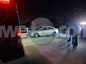 Diadomingo anochi a drenta informe di cu un un persona lo a cay for di un auto na Pos Chikito banda di Tio Pepe, mesora a dirigi tanto polis como ambulans na e sitio. Na yegada di e patruya a bin compronde cu un tata tabata cu baby den auto y tabata draai esaki y haci “fever” e mama a bay purba drenta den e auto pa e stop y net den birada e auto a saca e dama y bente na un distancia. Polis a tuma e baby y a pas’e pa un familiar. Na yegada di e ambulans nan a atende y a transporta e mama pa hospital. Polis a hala atencion di e tata irresponsabel aki.