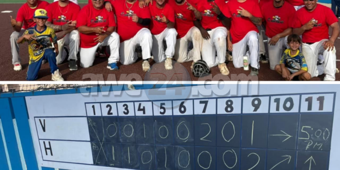 Copa Noord 2025 dedica na Johannes “Poy” Flanegin, Alvaro Barrios, Nel Frank y Francis Arcaya patronisa pa HEINEKEN a continua diadomingo ultimo na veld di Kudawecha. Den e ultimo wega riba schedule pa diadomingo den oranan di atardi Salbabo a midi forsa contra Super Plus. Fanaticada di ambos banda por a goza di un señor partido. Salbabo ta pica bay ariba den promer inning 1-0 y ta amplia esaki den bom di dos inning cu un careda mas hasiendo e score 2-0. Den cabez di 3 inning Super Plus ta logra corta e ventaha 2-1 pero den bom di 5 inning Salbabo ta keda pone presion y ta anota un careda mas pa hasi e wega 3-1. Ora tur cos ta mustra cu Salbabo ta kla pa celebra su victoria faltando 3 out Super Plus den su ultimo turno na bate den cabez di 7 inning ta anota 2 careda pa empata e wega y forsa bay extra inning usando asina e Tie Break rule. Den bom di 8 Salbabo ta yena base cu base por bola intencional pero no ta remolca. Den cabez di 9 inning Super Plus ta anota un careda pa bay ariba 4-3. Salbabo den bom di 9 inning ta logra empata e wega 4-4 y riba hit di oro di Chali Contreras Pulido cu basenan yen ta laga Super Plus den tereno 5-4. E celebracion a continua den tereno y fanaticada por mira atras riba un wega valido pa Copa Noord 2025 den pool B yena cu emocion. Pitcher ganador a resulta Roberto Henriquez kende a cubri henter e ruta. Pa Super Plus Albert Croes a habri e partido pero a wordo releva mesora den promer inning pa Poy Flanegin kende na su turno ta wordo releva pa Ray Giorgio Bernabela den di 5 entrada kende finalmente ta bay cas cu e derota. Pa Salbabo a destaca na bate Zefrinthian Kerr 3-2, Aigil Brete 4-2, Charli Contreras Pulido 1-1 cu e hit di ORO y Nigel Calmes di 2-1. Pa Super Plus a luci na plato Edgar Flanegin y Leuris Alcantara Ramos ambos di 3-2, Michell Alvarez di 1-1 y Ray Giorgio Bernabela di 2-1. Aparentemente dialuna mainta ainda Salbabo tabata celebrando pero sigur tabata un wega pa celebra. Copa Noord 2025 lo continua diasabra awor 24 di mei cu 3 partido amistoso 5pm,7pm y 9pm mientras diadomingo 25 di mei un tabla lo bulariba veld di Kudawecha. Cuminsando pa 11 am Bad Boys lo enfrenta Stingers, sigui pa 1245pm Kudawecha Redskins vs Super Plus, 2.30pm Calabas Blue Jays lo topa Royal Power y pa 4.15pm Kudawecha Indians lo topa Salbabo. Tur 8 ekipo lo mira accion diadomingo awor. Ambiente lo bay ta tremendo. Diadomingo awor the place to be!!! Veld di Kudawecha.