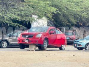 Diamars atardi un otro auto cu a bay bira riba e tereno habri pariba di rotonde Tarabana a subi un di e blokinan poni riba e tereno y a keda pega eynan. E subimento di e bloki aki ta causa daño bao di e auto cu tur e consecuencia concerni. Sea e doño di e tereno ta verf e blokinan aki of ta kita esakinan for di caminda ya cu esaki no ta e prome biaha cu esaki ta sosode.