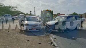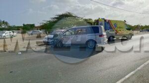 Dialuna atardi a drenta informe di un accidente cu hende herida , mesora a dirigi tanto polis como ambulans na e sitio. Na yegada di e patruya a bin compronde cu un chauffeur a baha caminda bay dal riba e taira di un truck y a bon bek bay dal riba otro auto. Na yegada di e ambulans nan a atende e chauffeur y a transporte pa hospital.