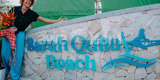“Cu gran honor e ekipo completo di Aruba Tourism Authority, cu ta traha incansablemente teniendo e helicopter view riba henter nos economia, pa promove un balansa entre turismo, medio ambiente, naturalesa y bienestar general di nos ciudadanonan, awe ta toca nos e placer grandi di honra Sarrah Quita Offringa, ganado di 25 titulo mundial den e deporte di windsurfing, cu un beach dedica na dje”, di acuerdo cu e ehecutivo na cabes di ATA.