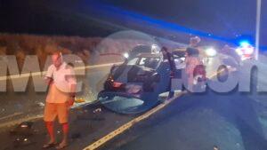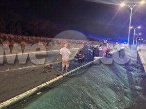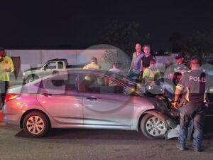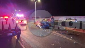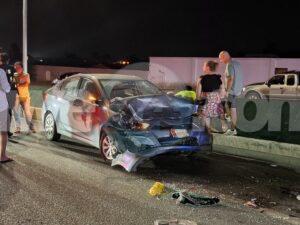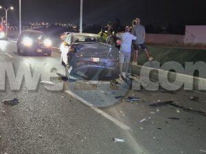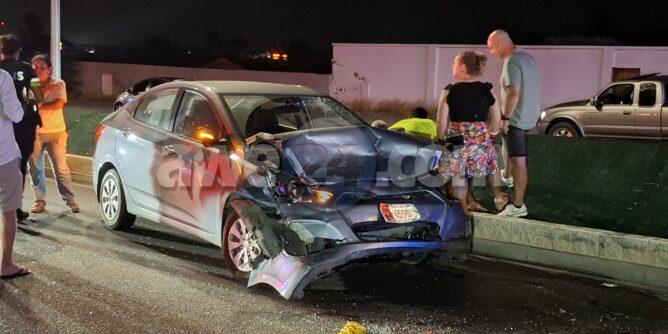 Diasabra anochi a drenta informe di un accidente basta fuerte cu hende herida riba E,J,”Watty” Vos Blvd., mesora a dirigi tanto polis como ambulans na e sitio. Na yegada di e patruya a bin compronde cu aki ta trata di un accidente unda un auto Hyundai Accent di huur coriendo cu velocidad halto a cambia di via y a bay dal fuertemente tras di un Suzuki SX4. Debi na e impacto tanto e chauffeur di e Hyundai como esun di e Suzuki a resulta herida. Na yegada di e ambulans nan a atende e victimanan y e chauffeur di e Hyundai so a ser hiba pa hospital mientras e otro chauffeur a ser atendi na e sitio mes.