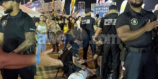 Diasabra madruga a drenta informe di un pelea despues di Flip Flop na Harbour Arena, mesora a dirigi polisnan cu tabata tin e vigilancia na e evento. Na nan yegada mesora a interveni y a para e pelea y a detene e persona cu su cabes a flip.