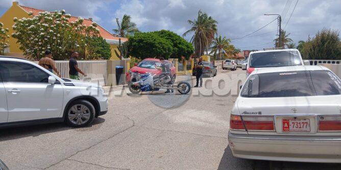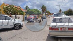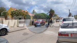 Diadomingo merdia a drenta informe di un incidente cu hende herida na caya Frere Bernardinus, mesora a dirigi tanto polis como ambulans na e sitio. Na yegada di e patruya a bin compronde cu aki ta trata di un incidente unda un motociclista a perde control y a dal abao net dilanti un auto staciona riba acera. Debi na e caida e motociclista a resulta levemente herida. Na yegada di e ambulans nan a atende e motociclista. E brommer mes a haya un poco daño.