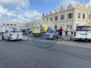 Diamars mainta a drenta informe di un accidente cu hende herida na Schotlandstraat dilanti Caribbean Overseas, mesora a dirigi tanto polis como ambulans na e sitio. Na yegada di e patruya a bin compronde cu aki ta trata di un accidente unda un dama special a bay subi e crusada net ora un bus ta pasa y a bay dal esaki den banda. Debi na e fuerte impacto aki tanto e dama special como e pasahero special tambe a resulta levemente herida, na yegada di e ambulans a atende ambos victima na e sitio mes.