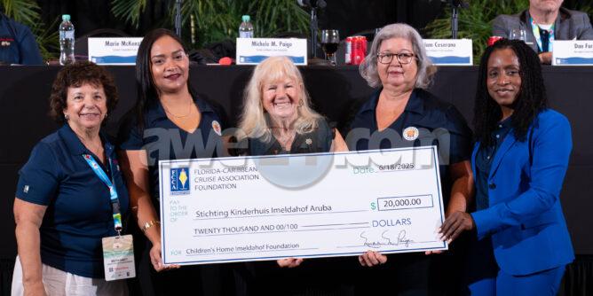 Durante e reunion general di PAMAC (Platinum Associate Membership Advisory Council) cu a tuma luga diaranson, a presentaun check di donacion balora na 20.000 dollar na KinderhuisImeldahof. E contribucion generoso aki a bin di Florida-Caribbean Cruise Association (FCCA), cu 50% di e donacion financia pa Centro Aquila pa Excelencia den Crucero. Beth Hatt, e fundado di Aquila, ta un miembro platinum respeta di e Florida-Caribbean Cruise Association (FCCA). E donacion aki ta den colaboracion estrecho cu e partnernan local, Aruba Ports Authority N.V. y Aruba Tourism Authority.