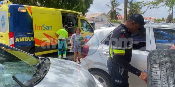 Diamars mainta a drenta informe di un accidente cu hende herida na e crusada Caya Juancho Kock cu Caya Papa Juan PabloII, mesora a dirigi un patruya na e sitio. Na yegada di e patruya a bin compronde cu aki ta trata di un accidente pa falta di preferencia unda e dama chauffeur di un Toyota Agya a subi e crusada sin a duna preferencia na e Toyota Vitz y a bay dal esaki y ambos a bay dal dos otro autonan staciona respectivamente un Toyota Rav y un Kia Picanto schuin otro banda di caminda. Debi na e impacto e dama chauffeur di e Agya a resulta herida y tabata keha di dolor na su pecho. Na yegada di e ambulans nan a atende e dama na e sitio mes.