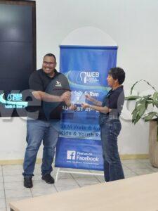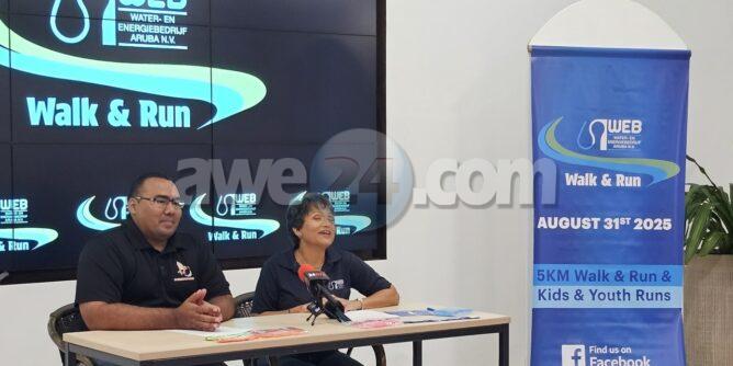 ORANJESTAD –Pa aporta y stimula comunidad pa semper keda den movecion, WEB Aruba awe mainta a anuncia hunto cu Patrishi Sports, e WEB Walk & Run 2025. Registracion pa e evento ya ta posibel pa adulto, hoben y mucha. E evento pa runners y walkers lo tuma luga dia 31 di augustus proximo. E distancia pa adulto ta 5KM. Pa hoben y mucha tin diferente distancia a base di edad y tur cay den ranking di Patrishi Sports. Durante e conferencia di prensa Rammy Ramada di Patrishi Sports a otorga BIB #1 na Asja Dongen, relacionista publico di WEB. Manera di custumber, e BIB #1 ta wordo reserva pa pone un persona den spotlight. Pronto WEB lo sorpresa un persona cu e BIB aki pa asina pon’e merecidamente den spotlight.