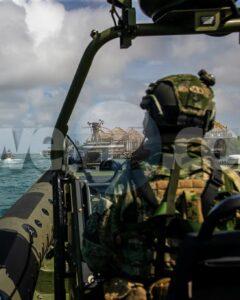 Na Aruba, e mariniernan a entrena Operacionnan di “Interdiction” Maritimo (MIO). Durante e entrenamento, nan a siña con tur pa acerca di manera sigur, controla y tuma control di embarcacionnan sospechoso. Entrenando pa actua den forma sigur contra menasa riba lama. Ya sea den caso di contrabando, asalto arma of situacionnan insegur. Asi nan, por garantisa e seguridad for di den lama.