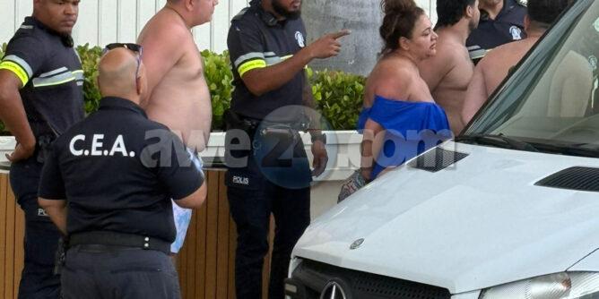 Diadomingo atardi a drenta informe di cu tin un pelea bayendo for di man na un hotel na Palm Beach, mesora a dirigi varios polis na e sitio incluyendo e patruya di Oranjestad. Na yegada di e patruya a bin logra para e pelea y a detene en total 5 turista. Tur a ser hiba warda di polis pa atende nan asunto.