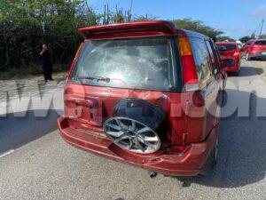 Dialuna atardi a drenta informe di un accidente na Caya G.F. “Betico” Croes pariba di ex-CableTV, mesora a dirigi un patruya na e sitio. Na yegada di e patruya a bin compronde cu aki ta trata di un accidente di cadena unda un Ford Escape sin seguro a bay dal tras di un Honda CRV bieuw tampoco tin seguro y sin number a bay dal tras di un Hyundai Accent cual si tin seguro. Afortunadamente ningun hende a resulta herida.