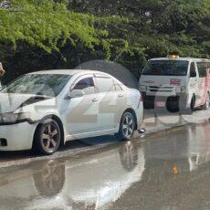 Diaranson mey anochi a drenta informe di cu tin un auto cu lo a dal e borchinan kibra y palo di lus den e parkinglot di Dimas y D.A.O. anto bay pasa den verboden den Koningstraat, mesora a patruyanan a sali y a logra blokea e crusada di Koningstraat cu Emmastraat. Ora nan a bay atende cu e chauffeur e tabata trata di un muhe bao influencia y cu tabata papia cosnan bruha e tabata compaña cu un otro muhe tambe burachi. Polis mesora a detene y despues a bay wak e daño haci den e parkinglot di Dimas.