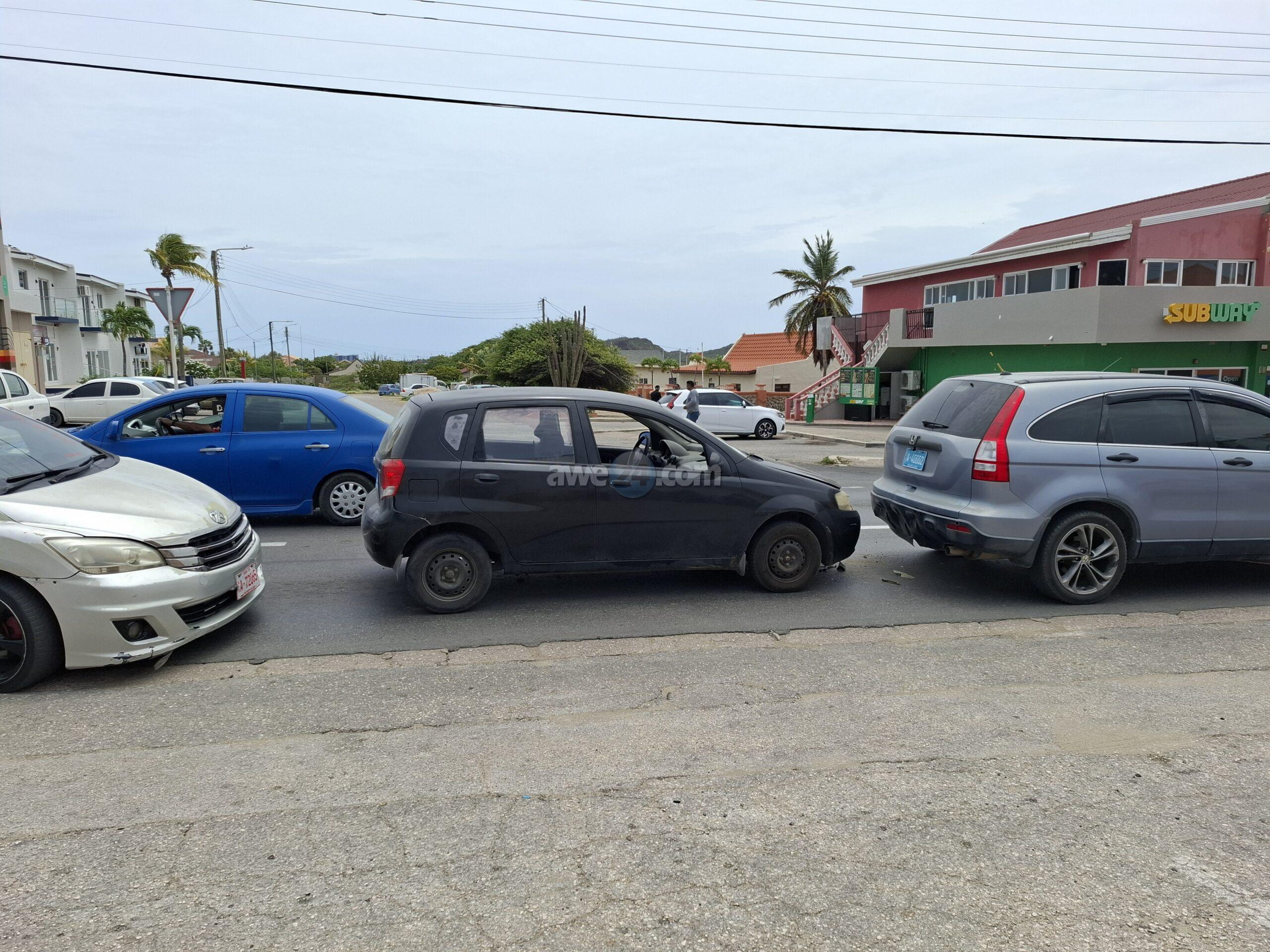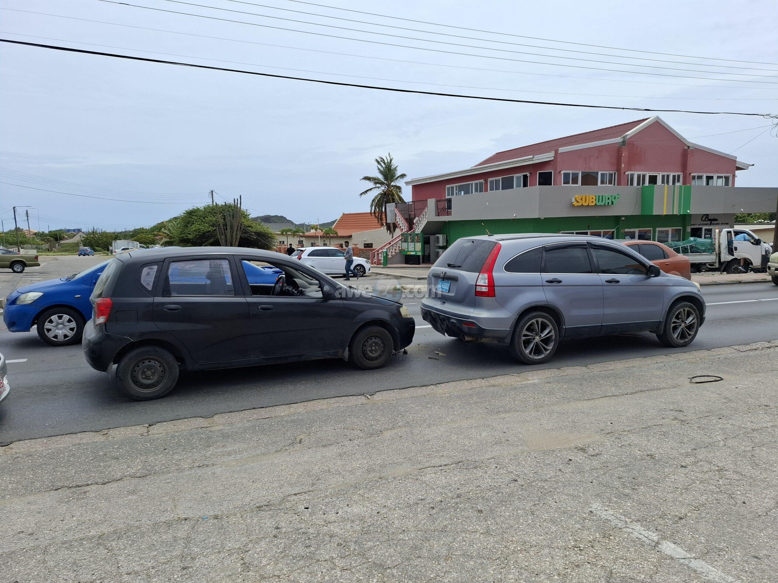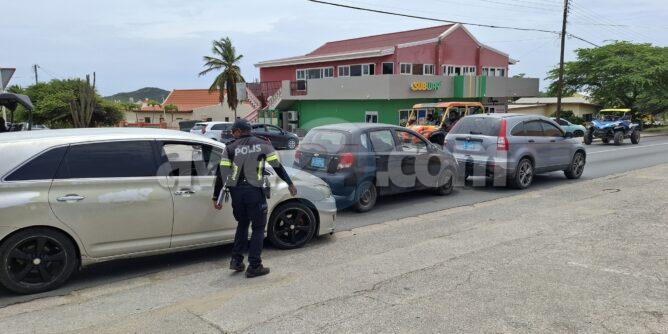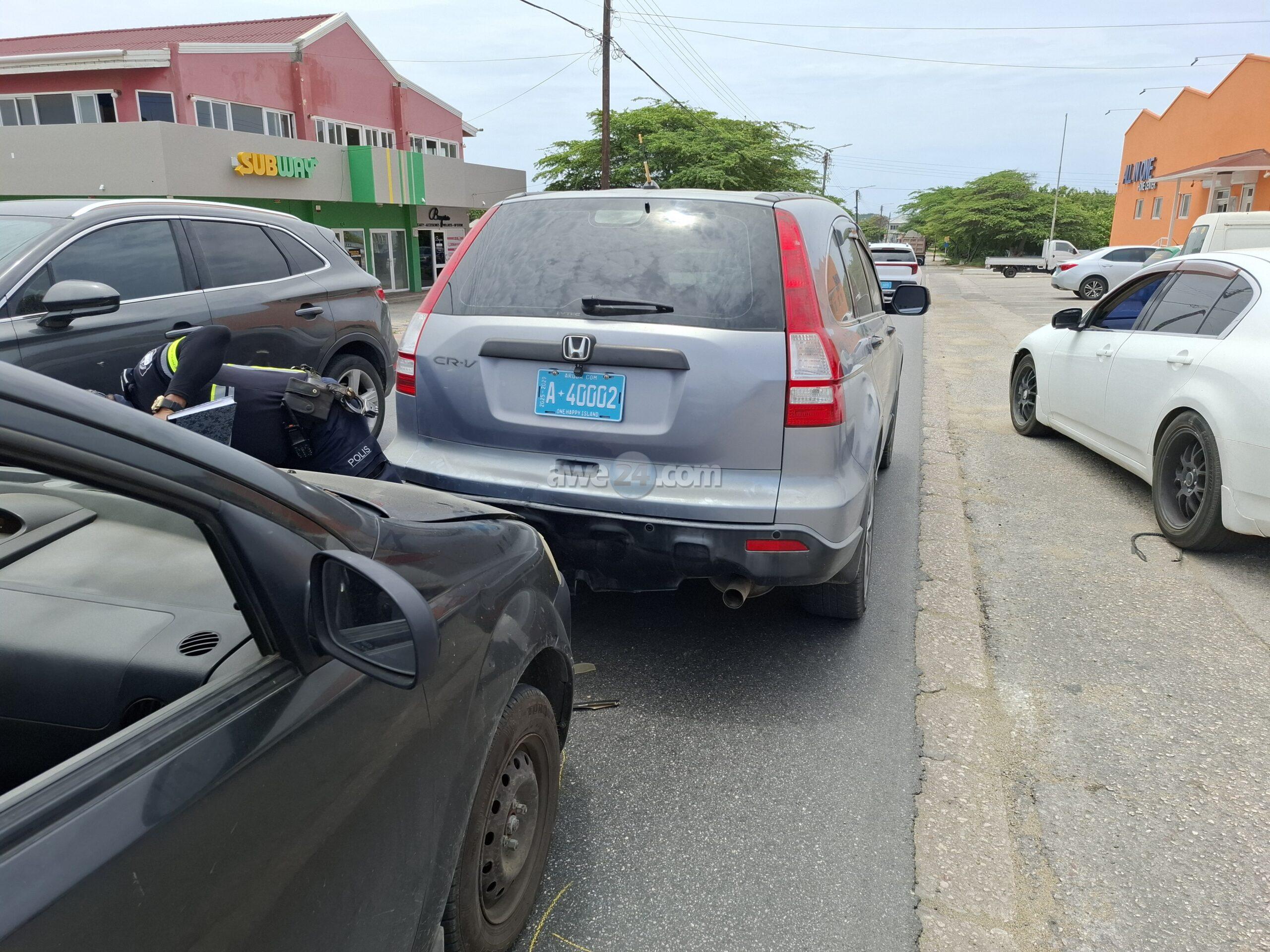 Diasabra merdia a drenta informe di un accidente dilanti Burger King na Santa Cruz, mesora a dirigi un patruya na e sitio. Prome cu e yegada di e patruya un ambulans a pasa revisa si tin hende herida pero afortunadamente ningun hende a resulta herida. Na yegada di e patruya mes a bin compronde cu aki ta trata di un chauffeur di un auto cu no a regula su velocidad ni a mantene distancia a bay dal tras si un Chevrolet Aveo y esaki consecutivamente a bay dal tras di un Honda CRV.