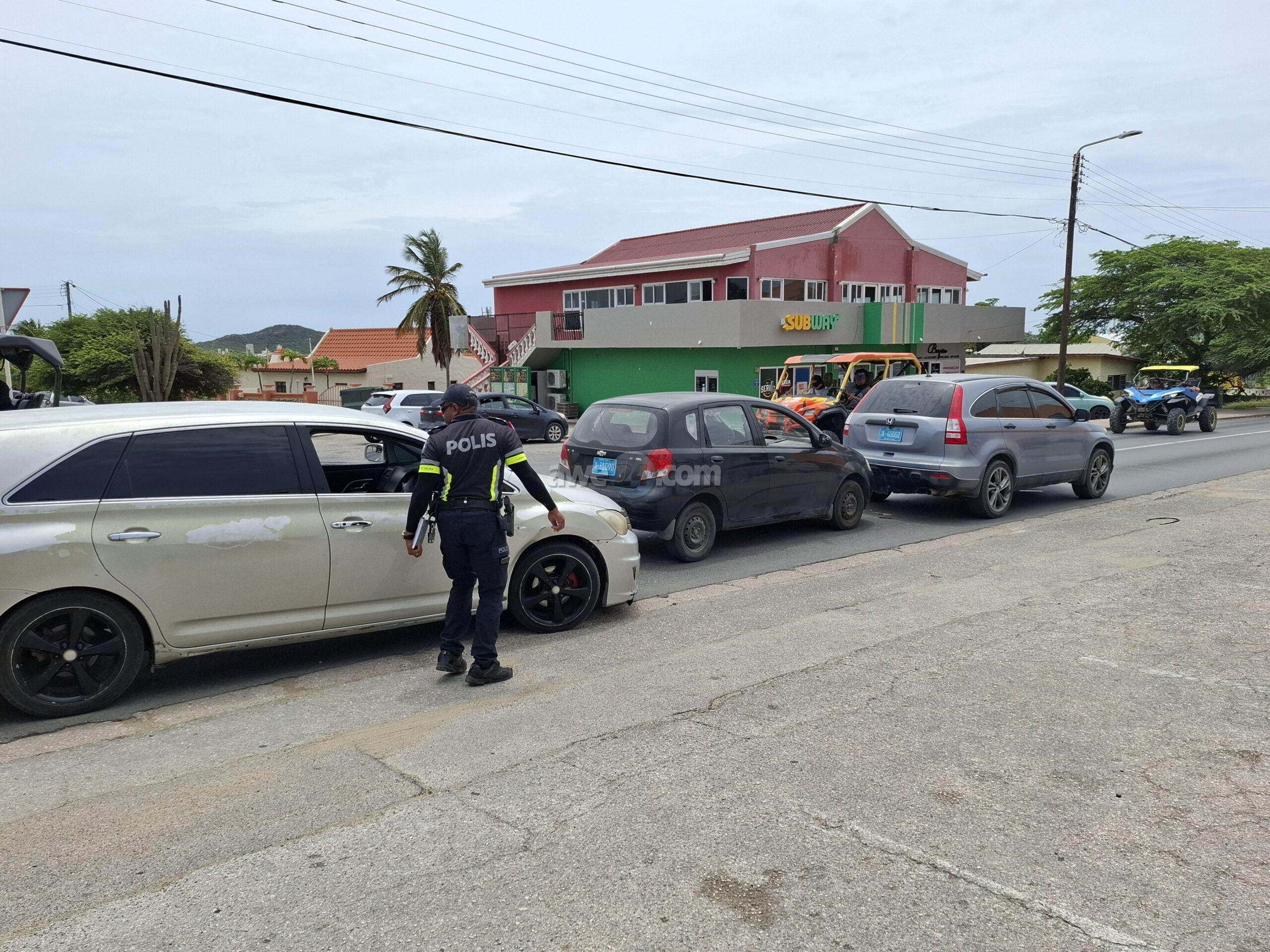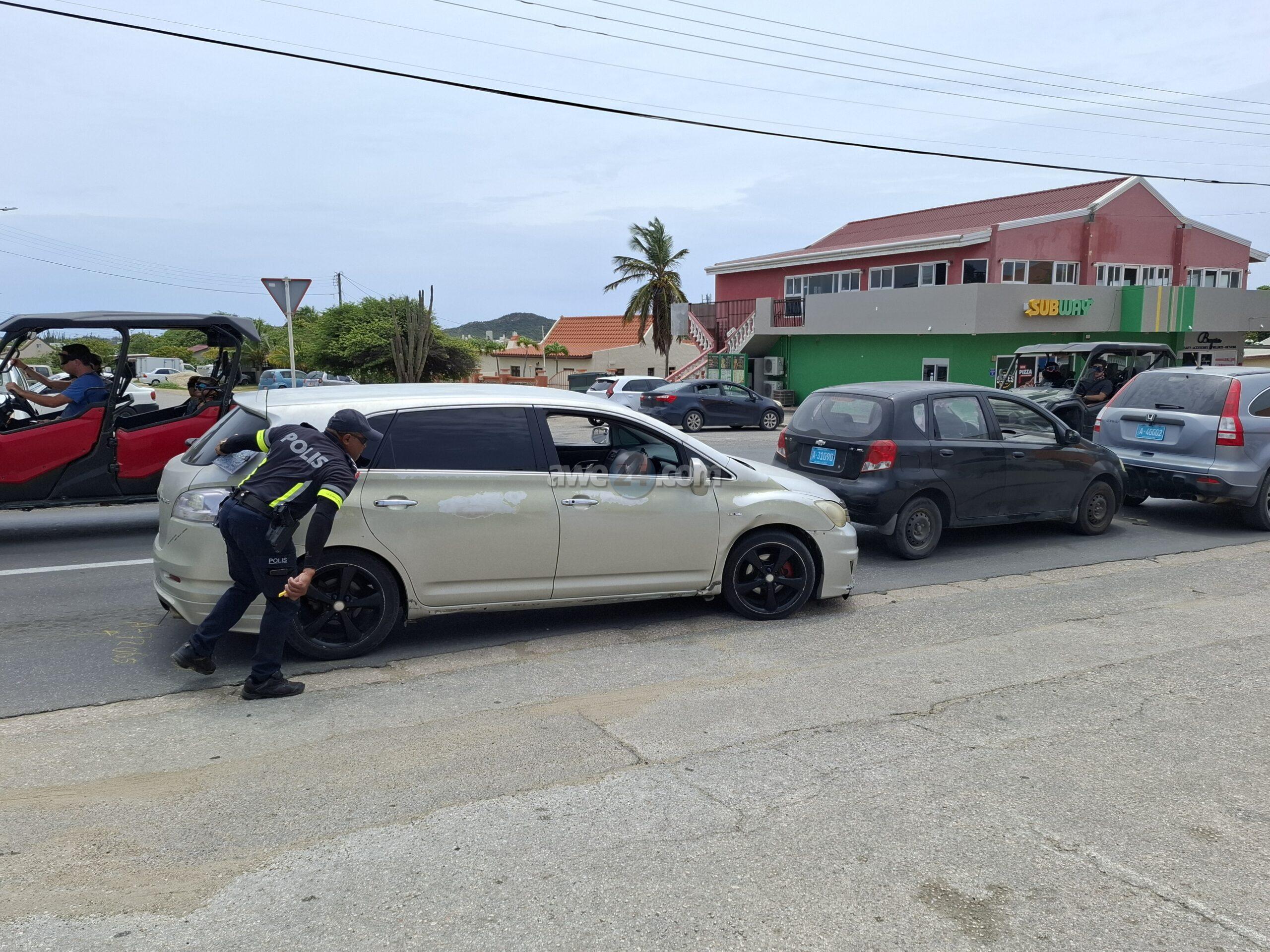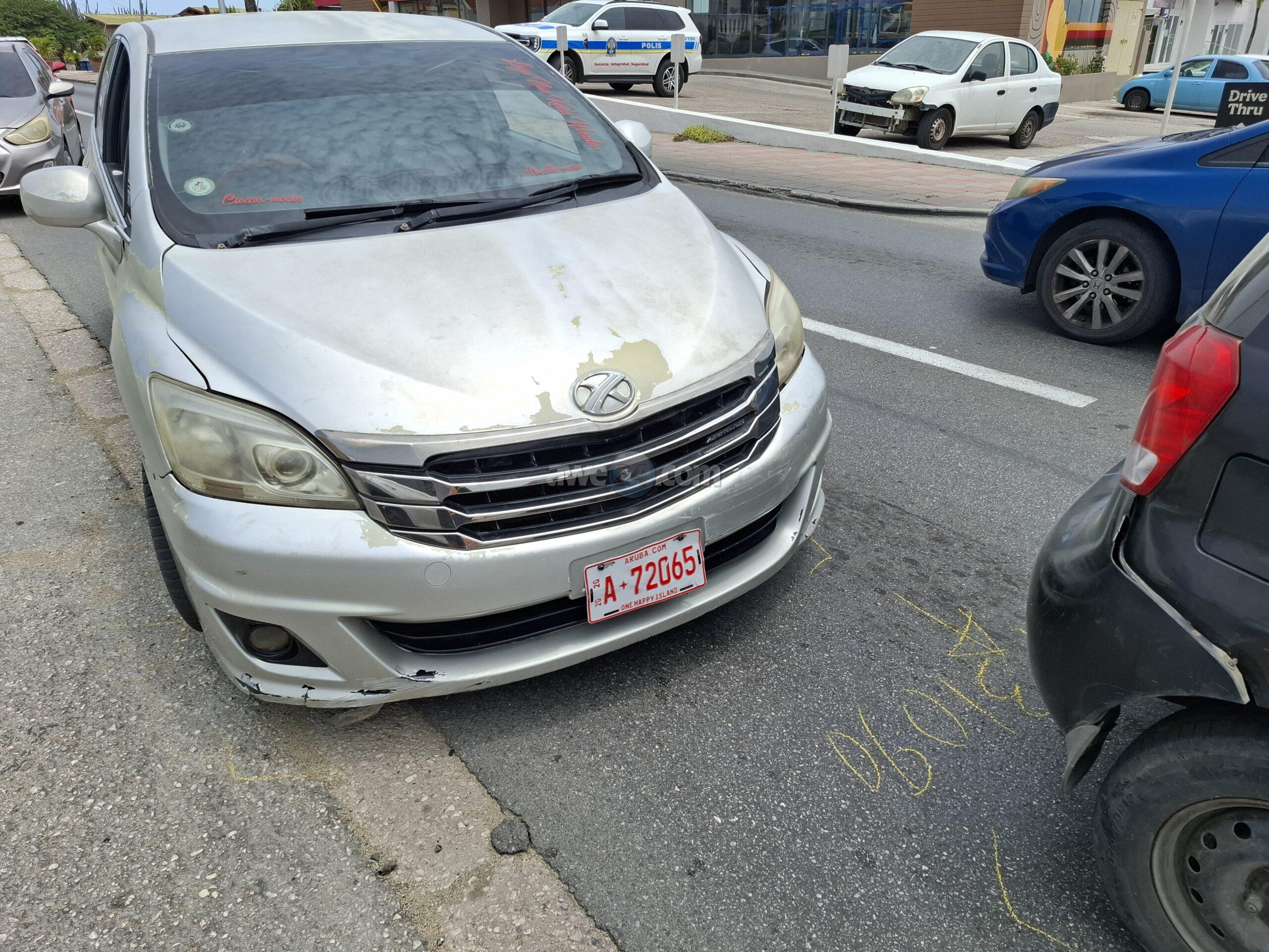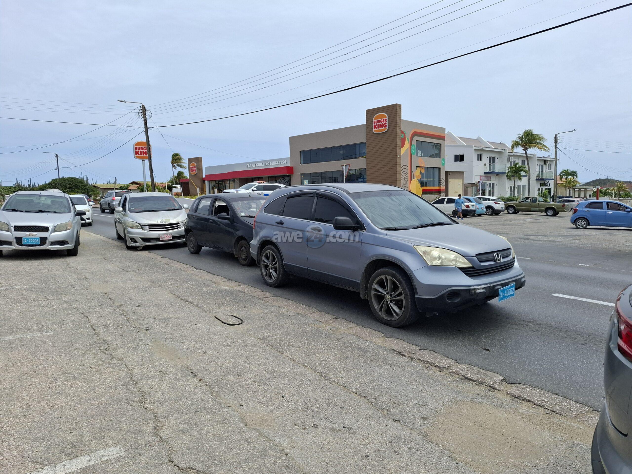 Diasabra merdia a drenta informe di un accidente dilanti Burger King na Santa Cruz, mesora a dirigi un patruya na e sitio. Prome cu e yegada di e patruya un ambulans a pasa revisa si tin hende herida pero afortunadamente ningun hende a resulta herida. Na yegada di e patruya mes a bin compronde cu aki ta trata di un chauffeur di un auto cu no a regula su velocidad ni a mantene distancia a bay dal tras si un Chevrolet Aveo y esaki consecutivamente a bay dal tras di un Honda CRV.