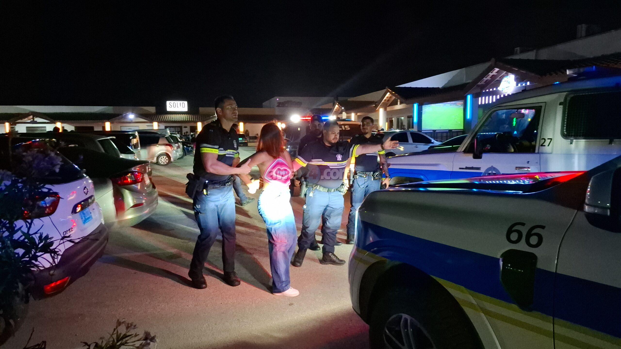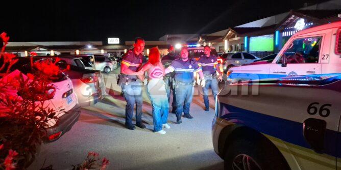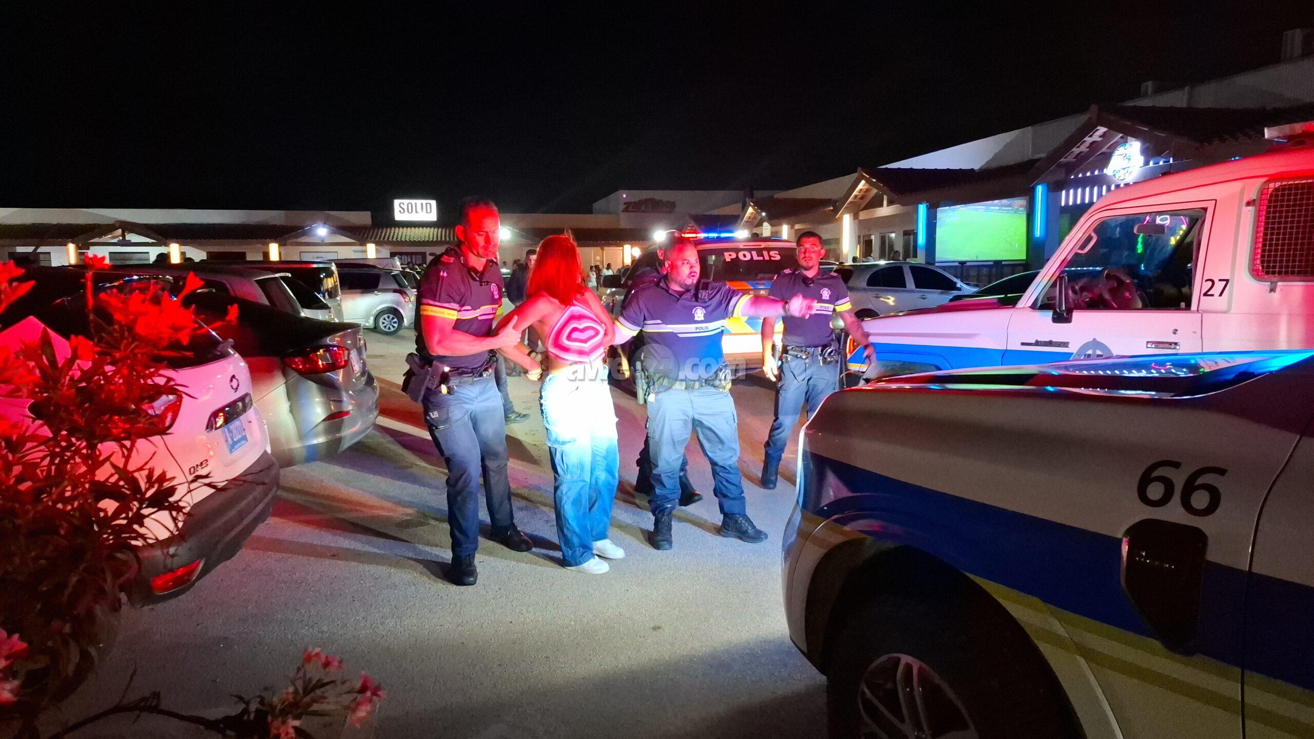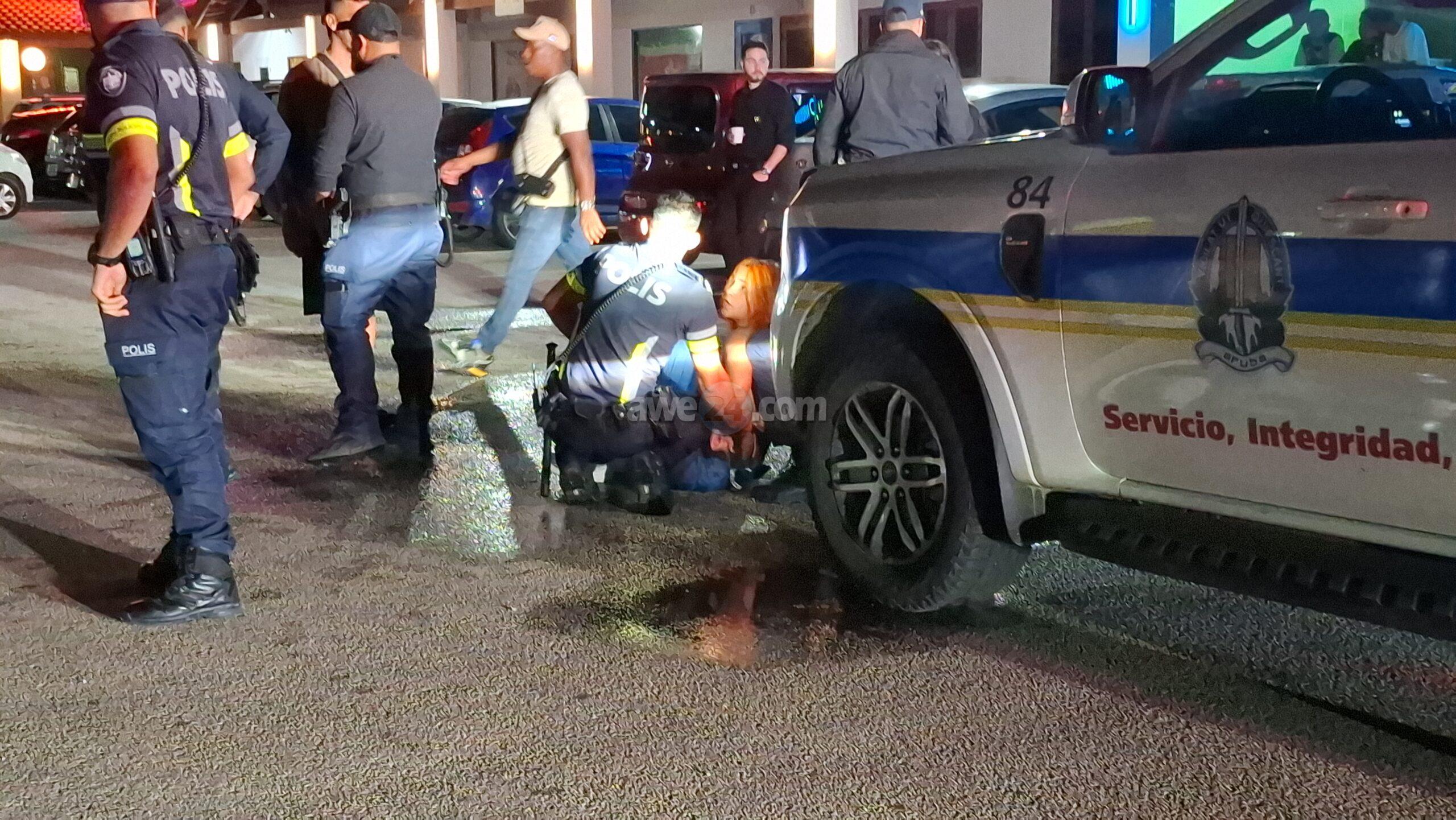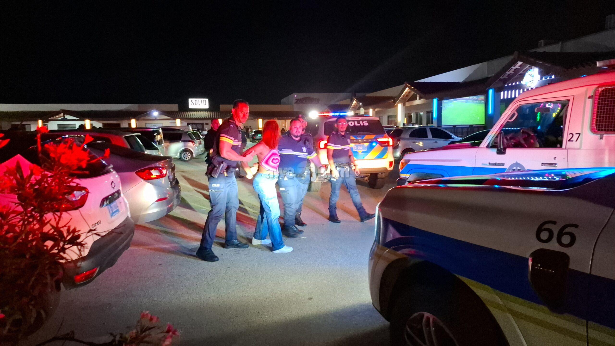 Diadomingo madruga a drenta informe di un pleitamento entre muhernan riba parkinglot di Coral Plaza, mesora a dirigi un patruya na e sitio. Na yegada di e patruya a pidi refuerso ya cu e situacion tabata tenso y pelea a cuminsa polis a papia varios biaha cu un di e muhernan envolvi pero e no tabata worry mes cu e polisnan. Na yegada di e refuerso a logra controla e situacion pero como cu un di e muhernan aki tabata bao influencia no a keda nada otro pa polis detene e muhe aki.