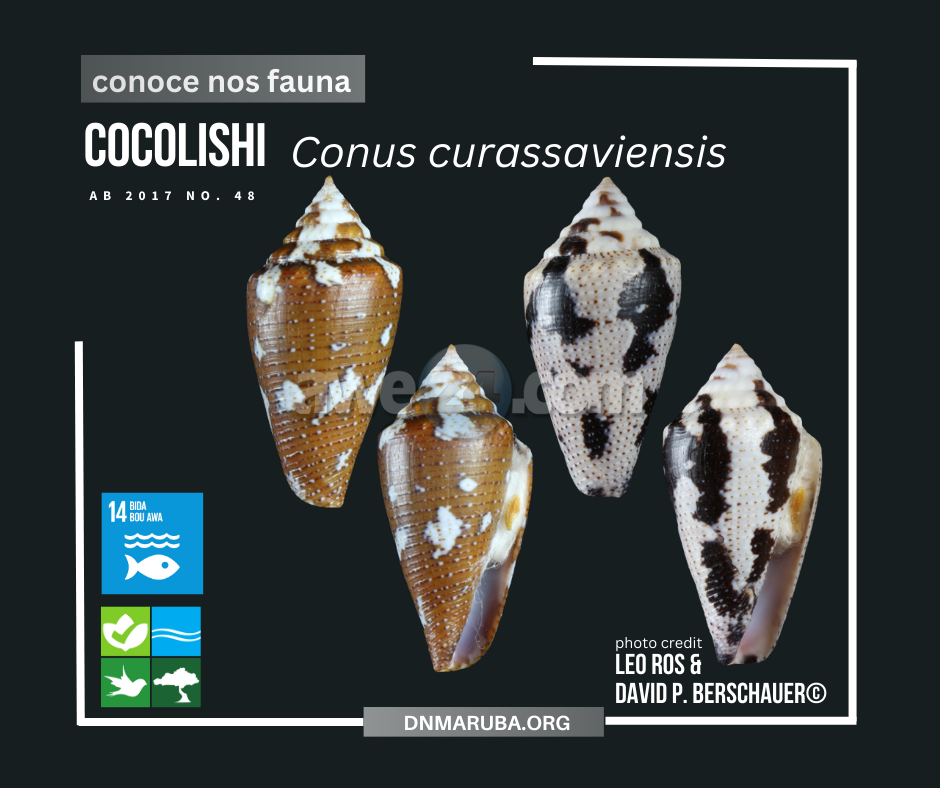 ORANJESTAD – Den e edicionnan anterior por a lesa e informacion di e cocolishinan Conasprella wendrosi y Conus hieroglyphus tambe yama Arubaconus hieroglyphus cerca investigado local. E cocolishi Conus curassaviensis ta e di tres sorto di cocolishi di lama endemico pa Aruba.