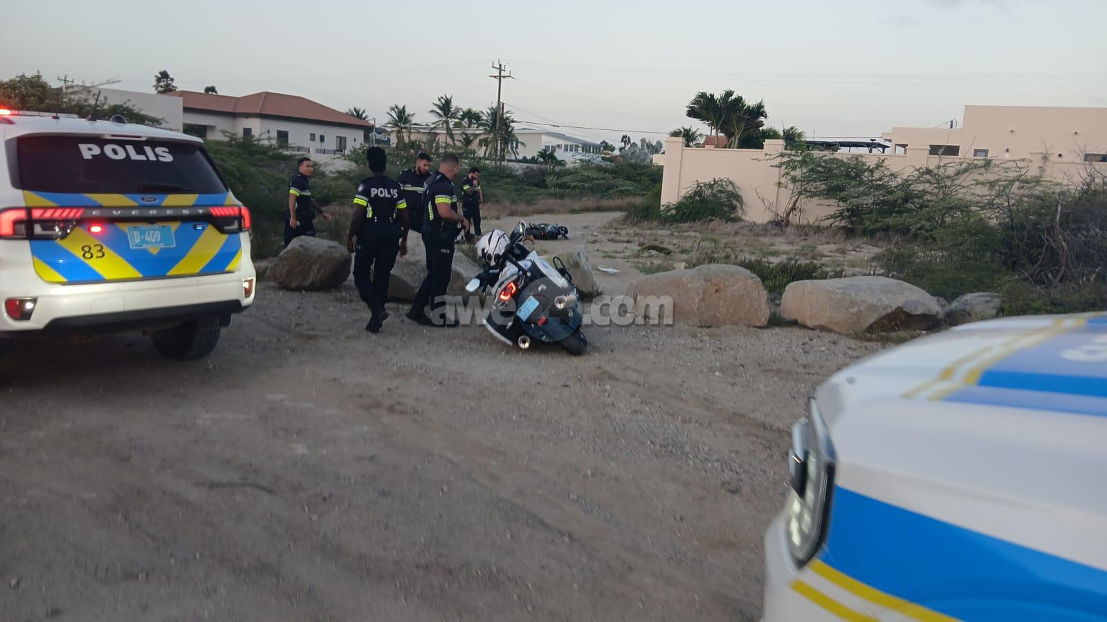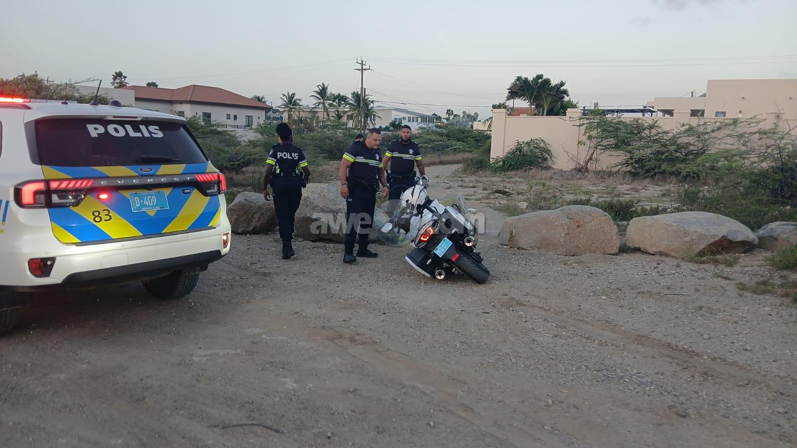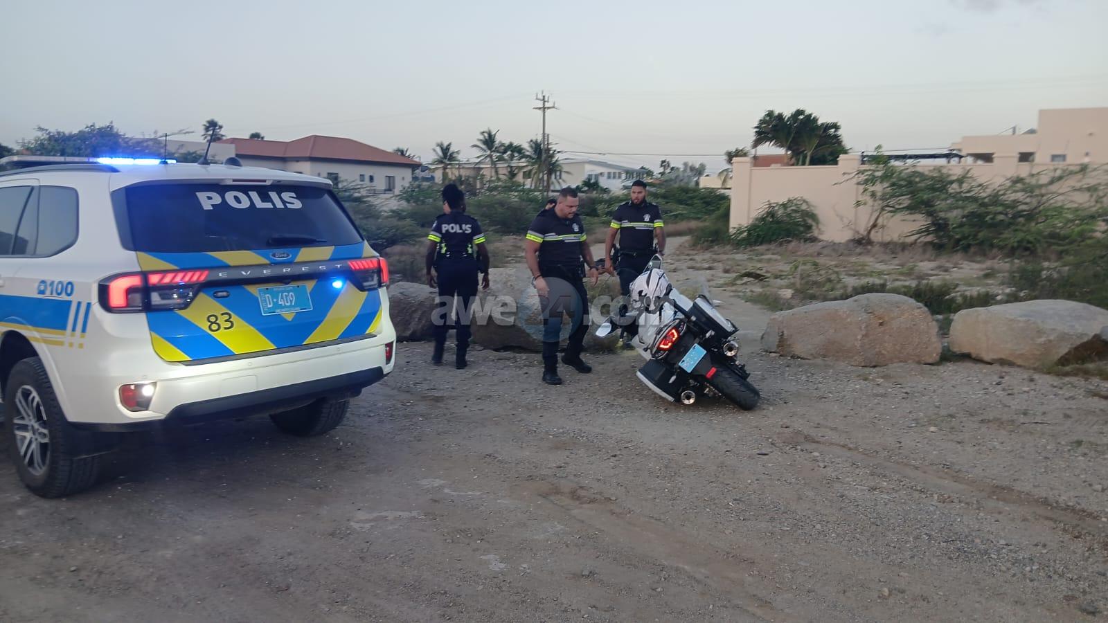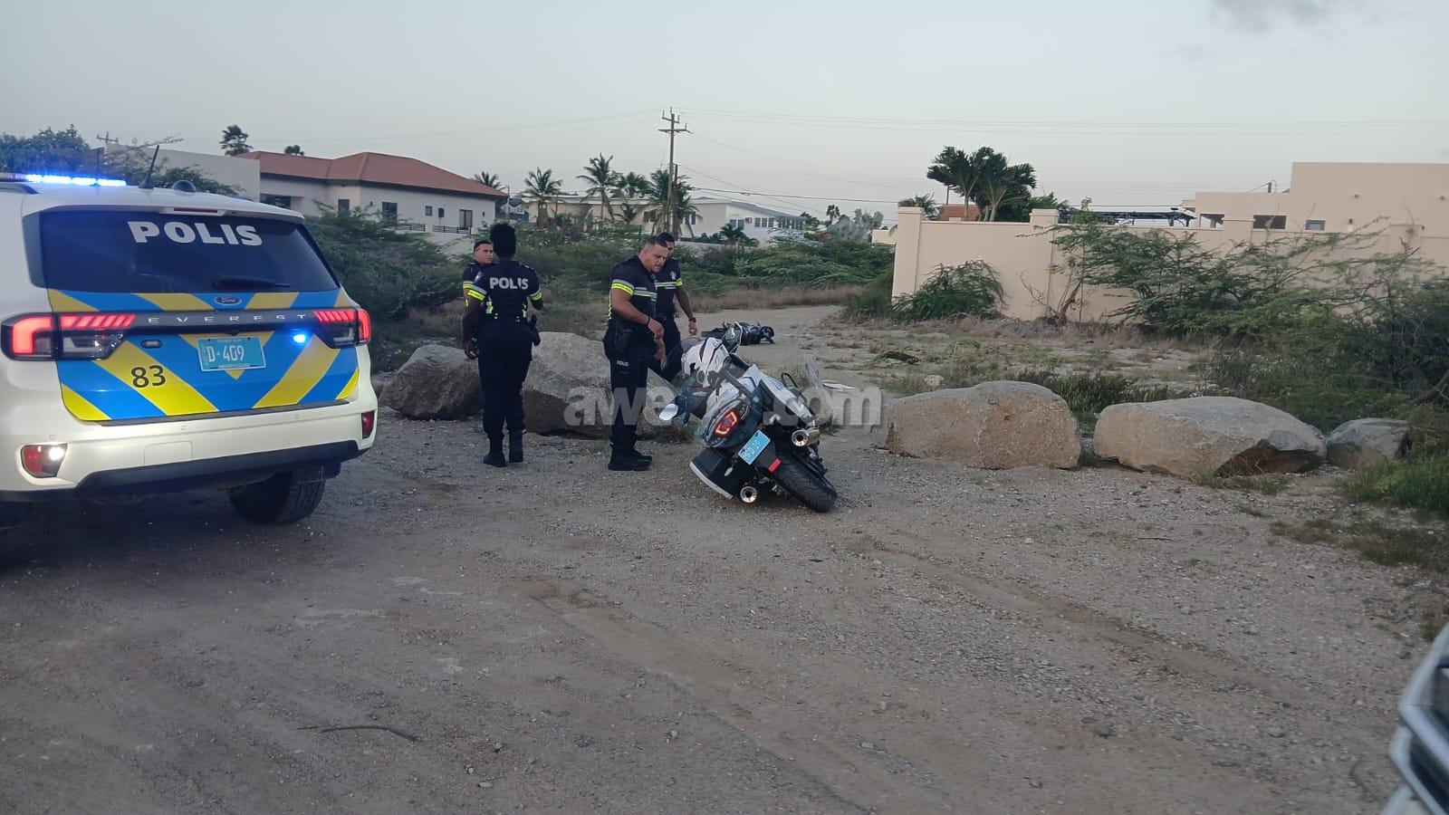 Diamars atardi a drenta informe di cu un polis di e brigada motorisa kier a para un motociclista den area di nort pero no kier a para. E motociclista a purba na un “shortcut” pero esaki a salie di malo y ela dal abao e polis cu tabata su tras tambe a dal abo pero mesora a lanta bay riba e sospechoso y a detene mientras refuerso a yega. E vehiculo di transporte tambe a presenta y a hiba e sospechoso hunto cu su brommer pa warda di polis.