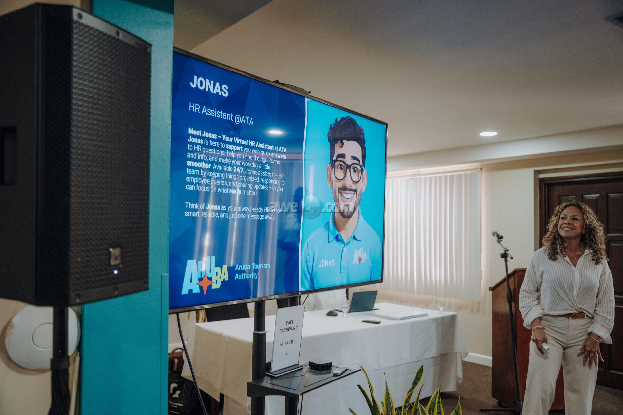 Oranjestad, Aruba- Dialuna dia 14 di juli a tuma luga lansamento oficial di “Jonas”, un proyecto innovativo entre Aruba Tourism Authority (A.T.A.) y AFAS. Despues di un proceso extenso di desaroyo y preparacion, A.T.A. ta bira e prome cliente den Caribe cu ta implementa e modulo di Inteligencia Artificial (Artificial Intelligence, AI) di AFAS; como “un colega” mas den e Departamento di Recurso Humano di A.T.A.
