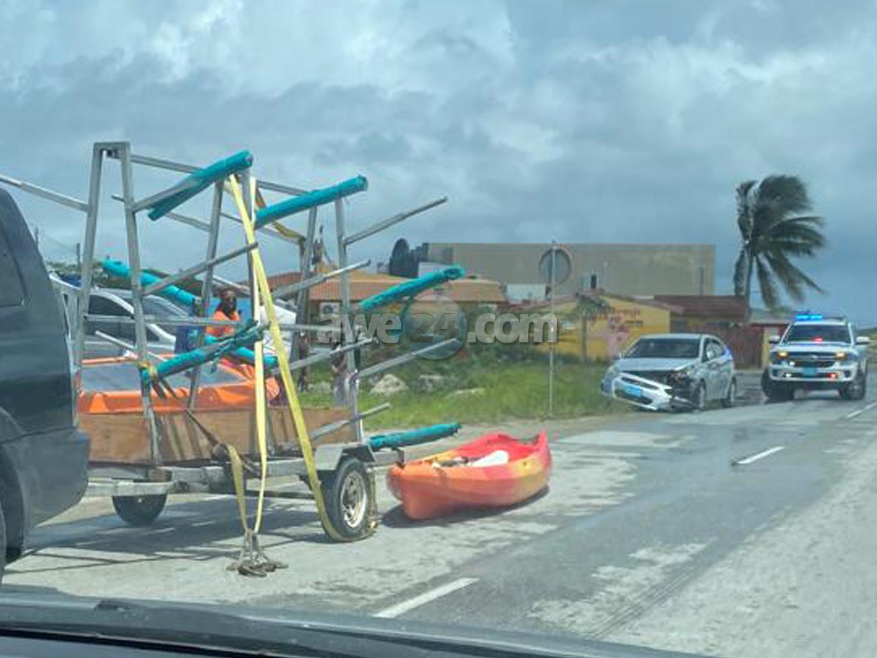 Diaranson merdia a drenta informe di un accidente pabao di La Granja Savaneta riba e caminda paden, mesora a dirigi un patruya na e sitio. Na yegada di e patruya a bin compronde cu aki ta trata di un accidente entre un auto cu un trailer cu “Kayak” unda e auto a keda bastante destrui. Afortunadamente ningun hende a resulta herida.