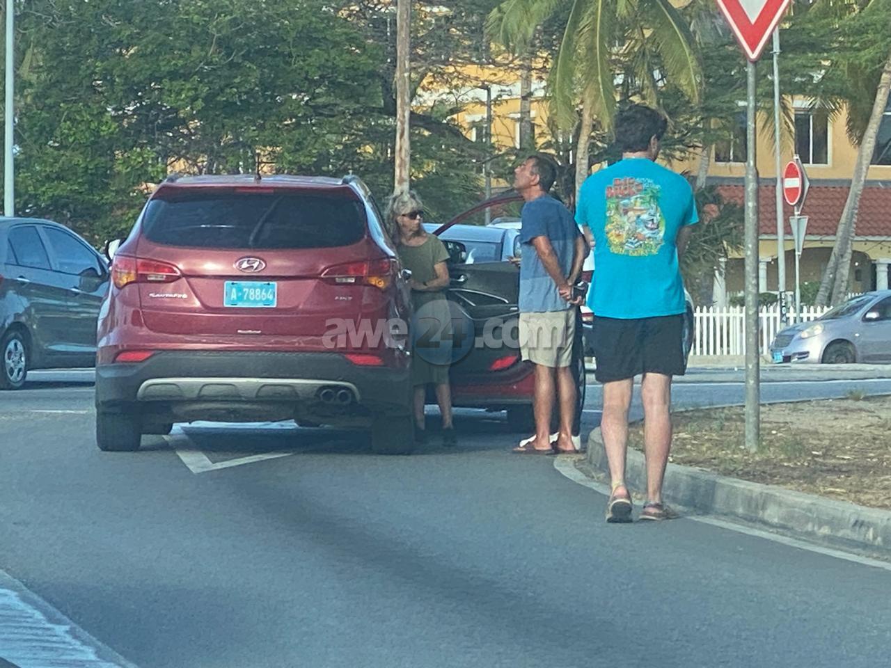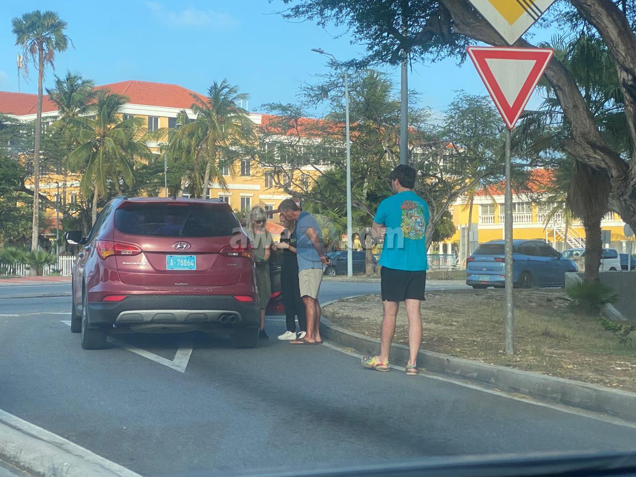 Diahuebs atardi a drenta informe di un accidente na e rotonde banda di Guardian Group, mesora a dirigi un patruya na e sitio. Na yegada di e patruya a bin compronde cu aki ta trata di un accidente unda cu e chauffeur di un Hyundai Santa Fe no a regula su velocidad ni a mantene distancia a bay dal tras di un Hyundai Accent cu tabata su dilanti. Afortunadamente ninguun hende a resulta herida.