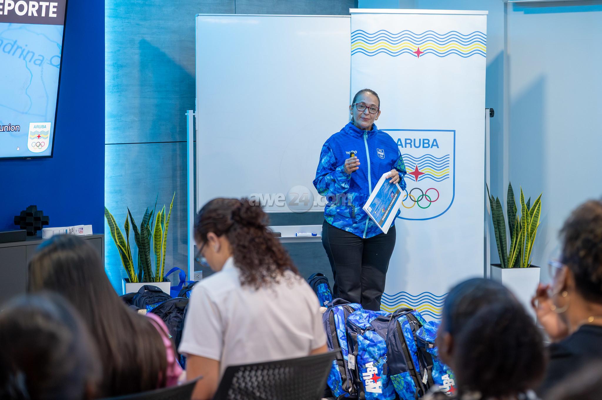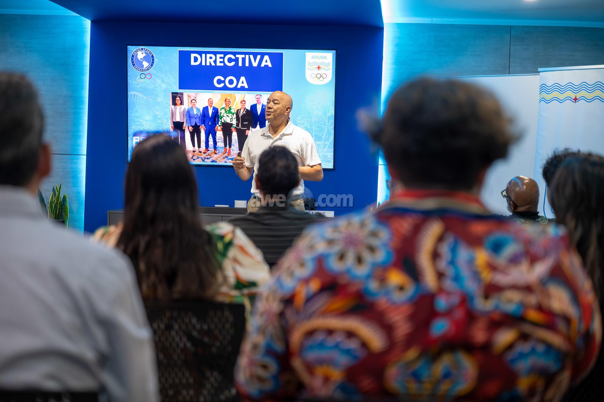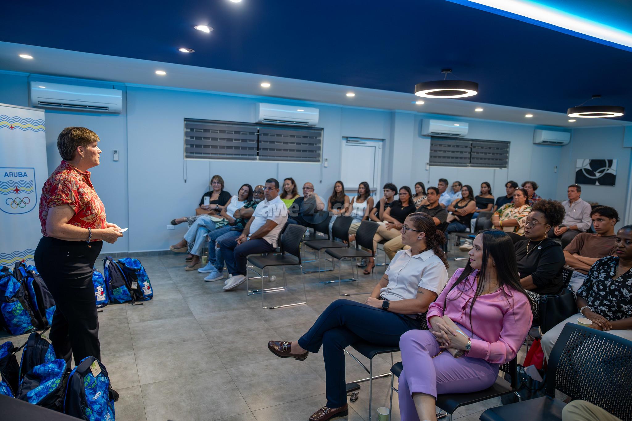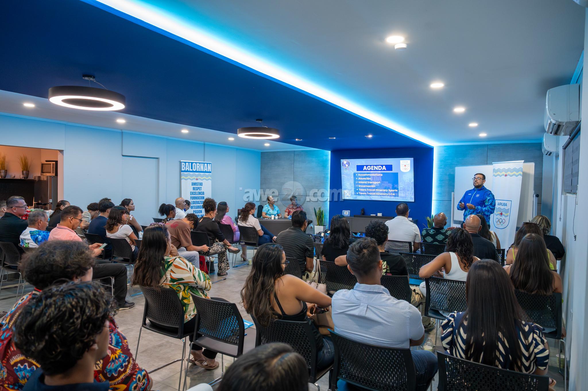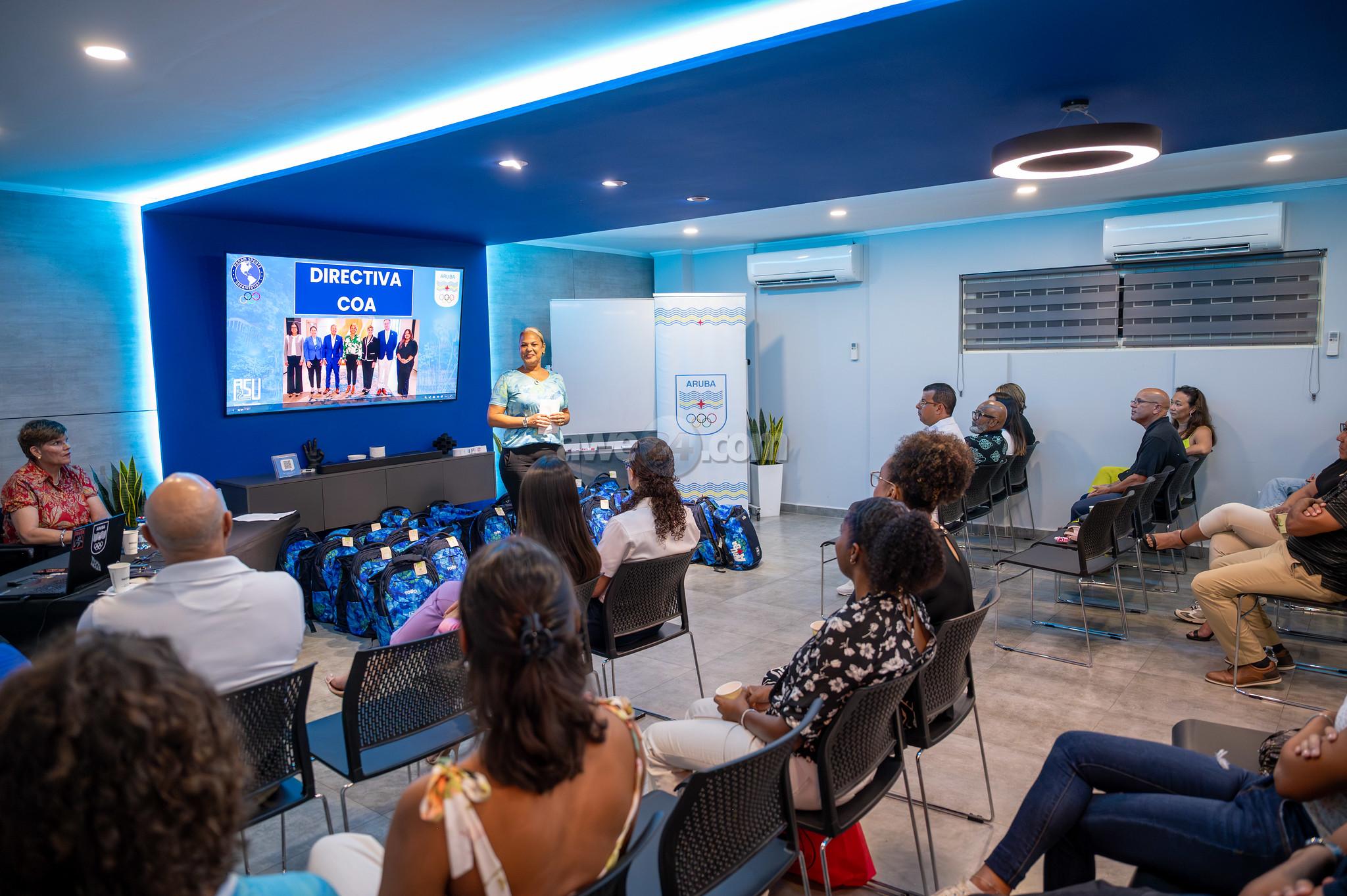 E reunion a cuminsa cu un yamada di bon bini di presidente di COA Wanda Broeksema y Secretaria General Nicole Hoevertsz, cu a expresa e beyesa di e experiencia di por ta parti di un wega multideportivo di e magnitud aki. A enfatisa e importancia di gosa di e oportunidad aki y comparti cu tur otro persona di e difente 40 pais cu tambe lo tey pa participa. A corda tur miembro di e delegacion cu ora ta biaha pa participa na un wega asina importante, cu bo ta bira un embahador di Aruba y lo mester representa nos pais dignamente. Adicionalmente, a comparti informacion importante di e parti di Anti-Doping, unda Patrick Werleman a duna un charla breve splicando diferente punto di interes. Concluyendo e parti general, a presenta e “Welfare Officer” cu lo acompaña e delegacion, Sra. Lilah Maduro-Wever, cu ta un psicologo y lo ta encarga cu e parti di “Safe Sport”.