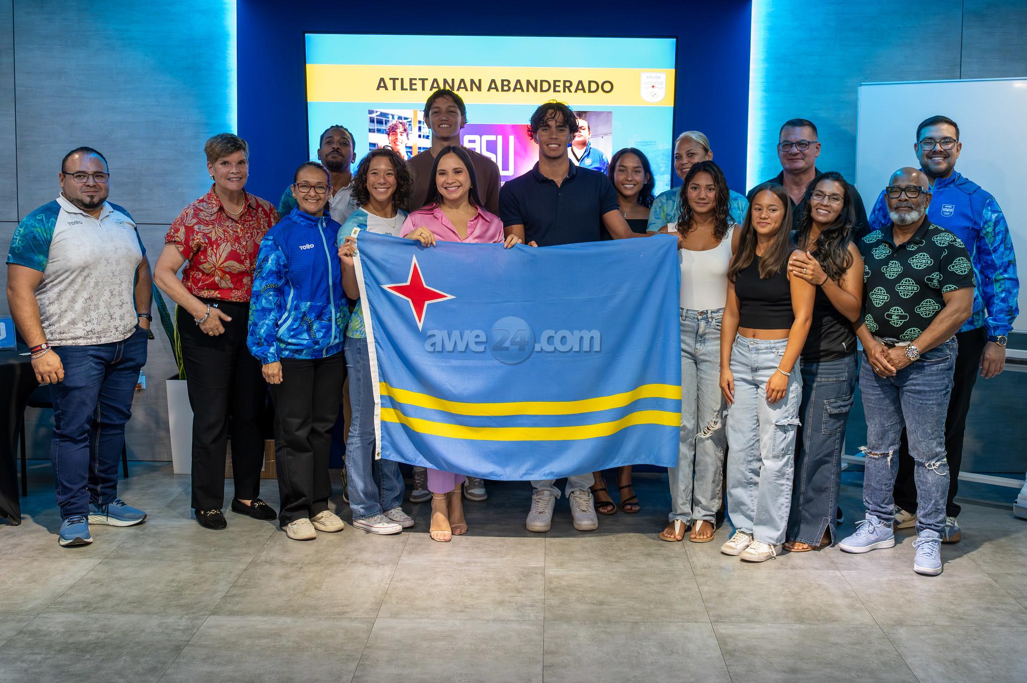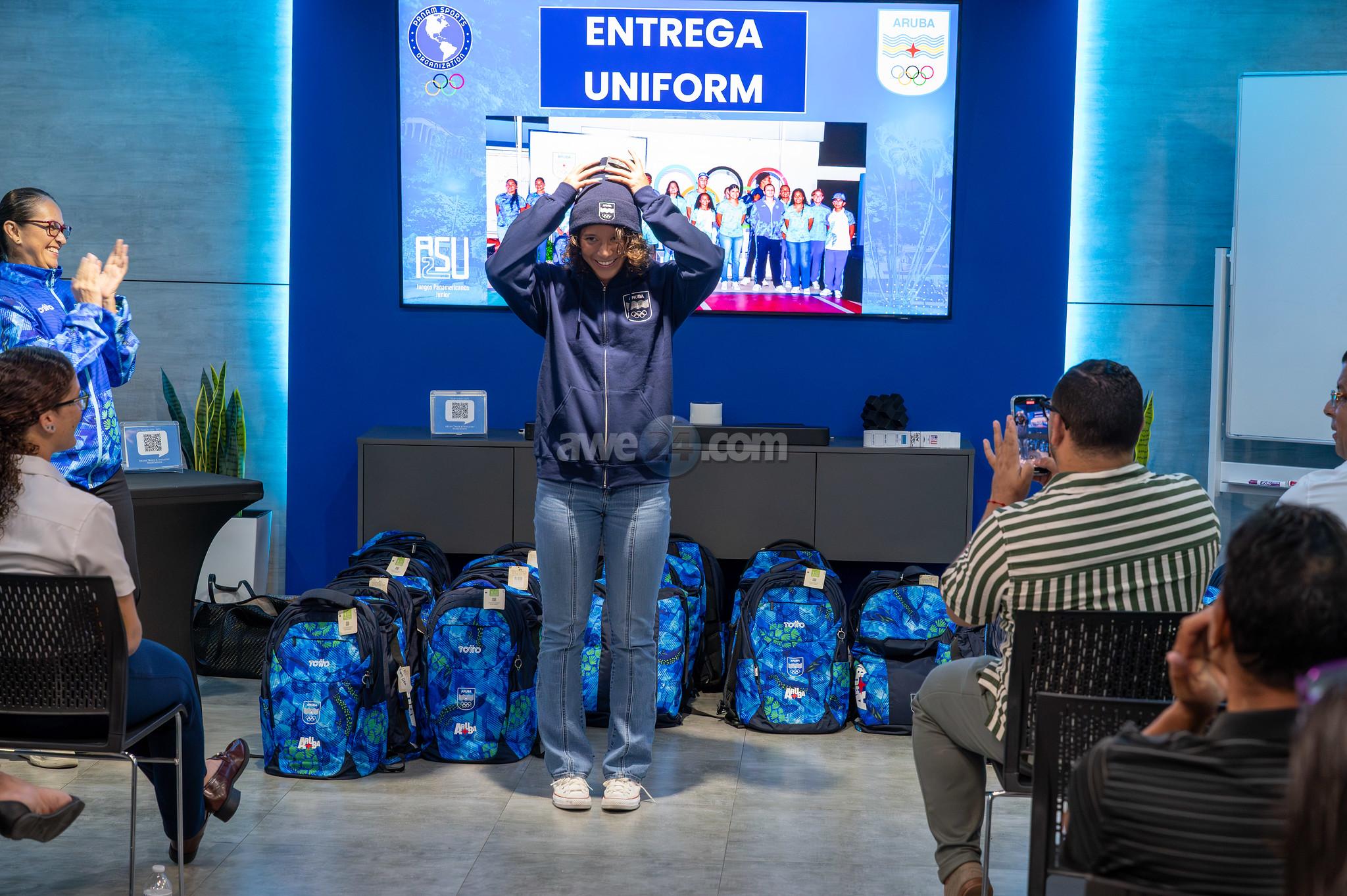Pa conclui e anochi, a haci entrega di e uniformnan oficial y pins di Comite Olimpico Arubano, cu tur miembro di e delegacion ta ricibi pa asina bisti durante e weganan. Entrega di e uniformnan a wordo haci door di Presidente di COA y Minister Croes. Finalmente, a anuncia e abanderodonan pa e delegacion di #TEAMARU, cu lo lidera e grupo durante e ceremonia di apertura na e weganan. E honor a bay pa Maelynn Fradl di Taekwondo y Inald Fernandes Perna di Natacion. Ambos atleta a destaca durante e ultimo aña y awo lo ta e cara di e delegacion di Aruba y lo carga e bandera di nos pais na laira. COA ta desea e delegacion aki hopi exito na ASU2025. #TEAMARU