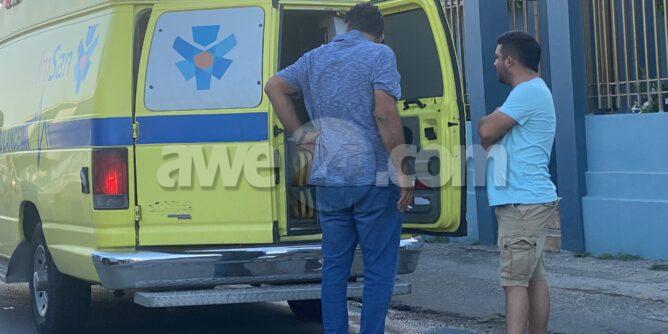 Ambulans a bay banda Kini Kini Building pa un persona cu lo a sak den otro y a dal abao