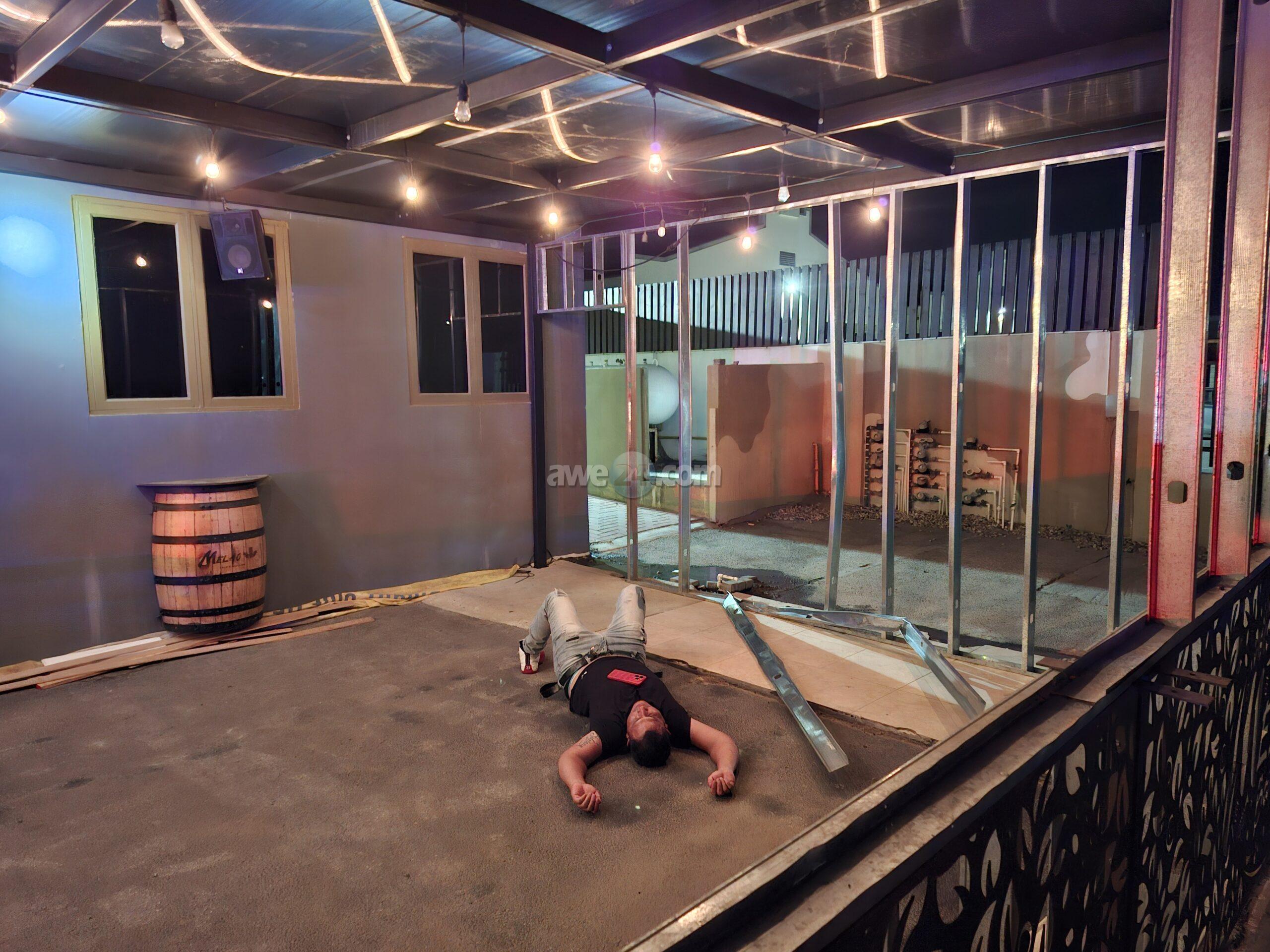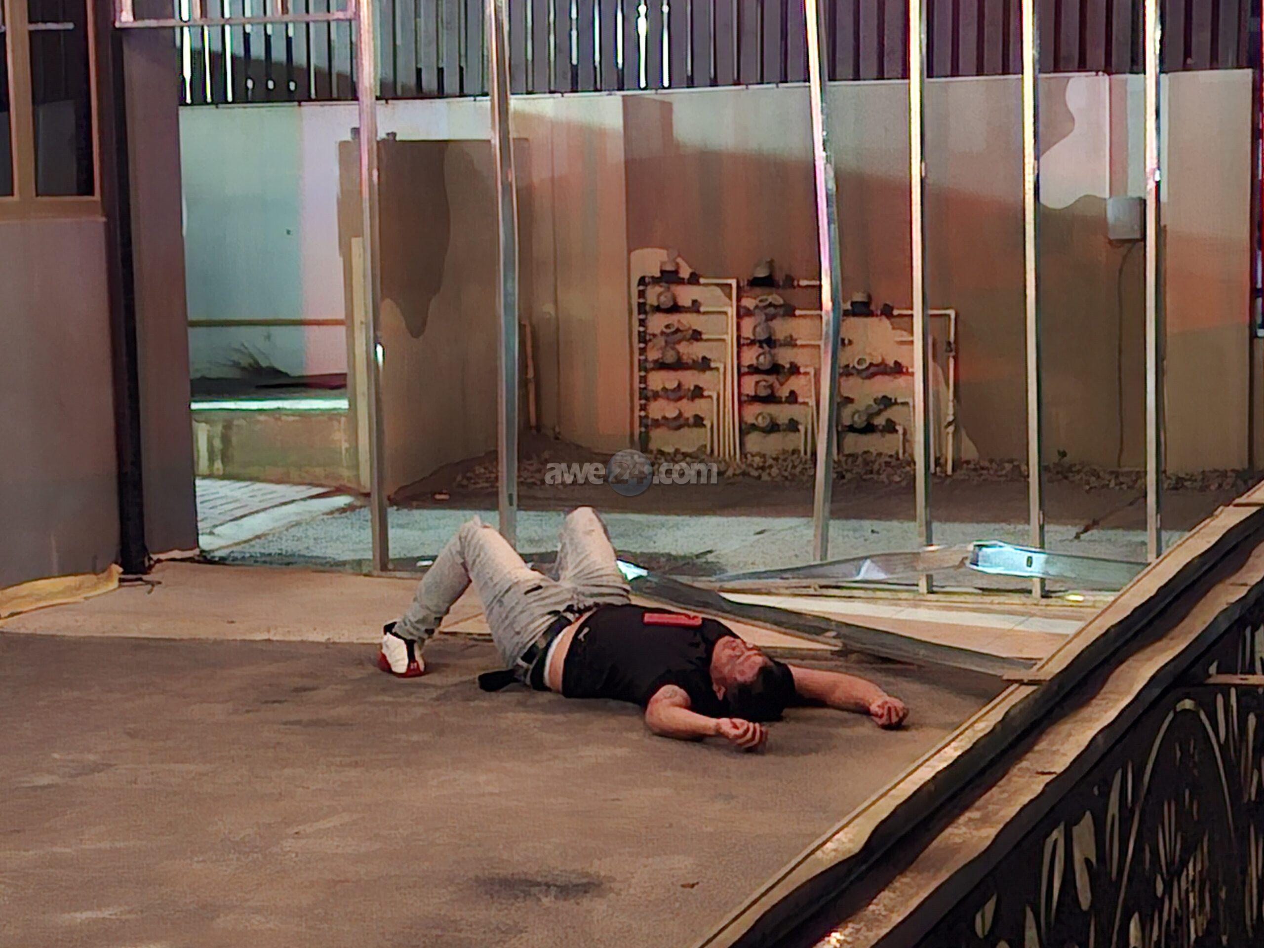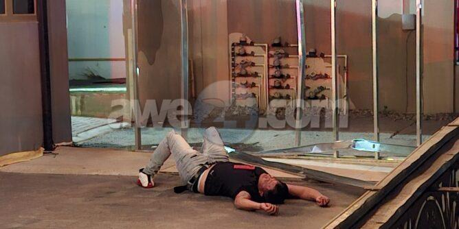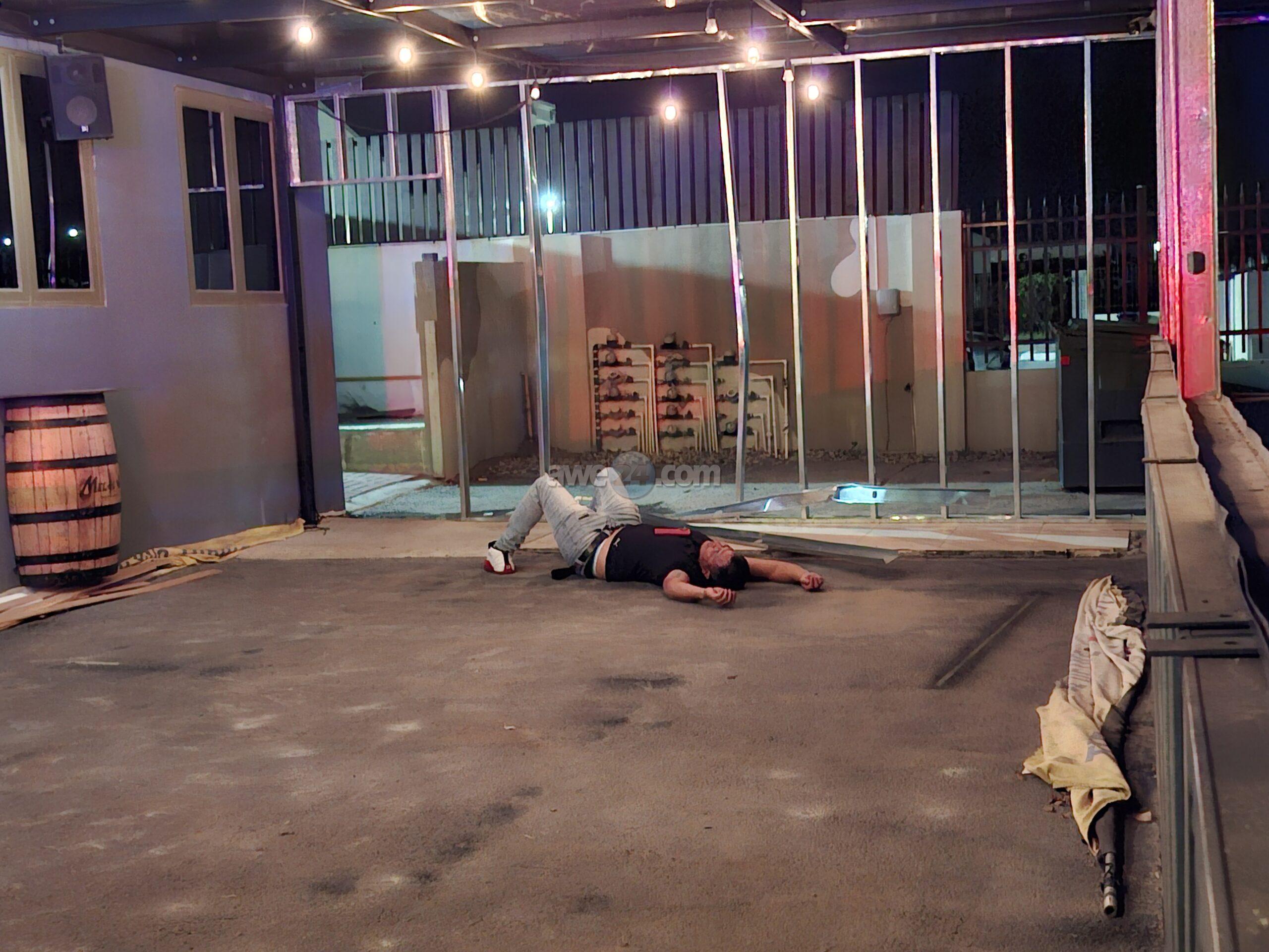 Diadomingo madruga a drenta informe di cu un persona burachi lo kier a bringa cu e security di un club nocturno pero ela dal abao keda eybao benta, mesora a dirigi patruyanan na e sitio. Na yegada di e patruyanan a bin compronde cu e homber burachi lo kier a bringa cu e security pero despues di a dal e security ela core bay dal riba un tubo di hero y a keda benta eybao. Polis a bay lante’le pero ni por a para riba su pianan. Ora ela dal na e tubo di construccion ela causa daño na e luga y awor ta depende si e doñonan dicidi di entrega keho pa e daño cometi.