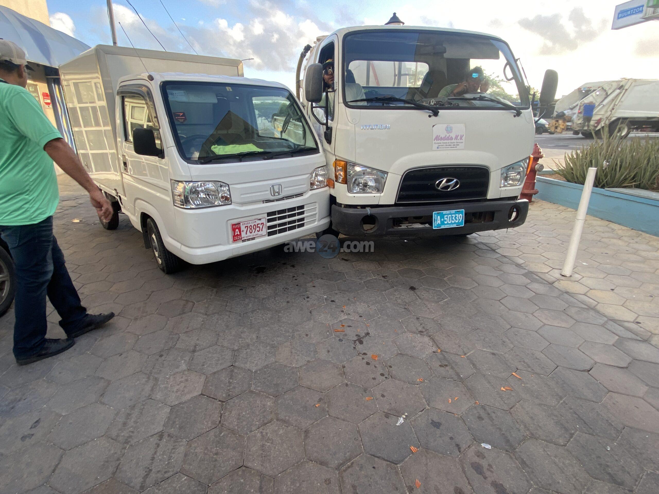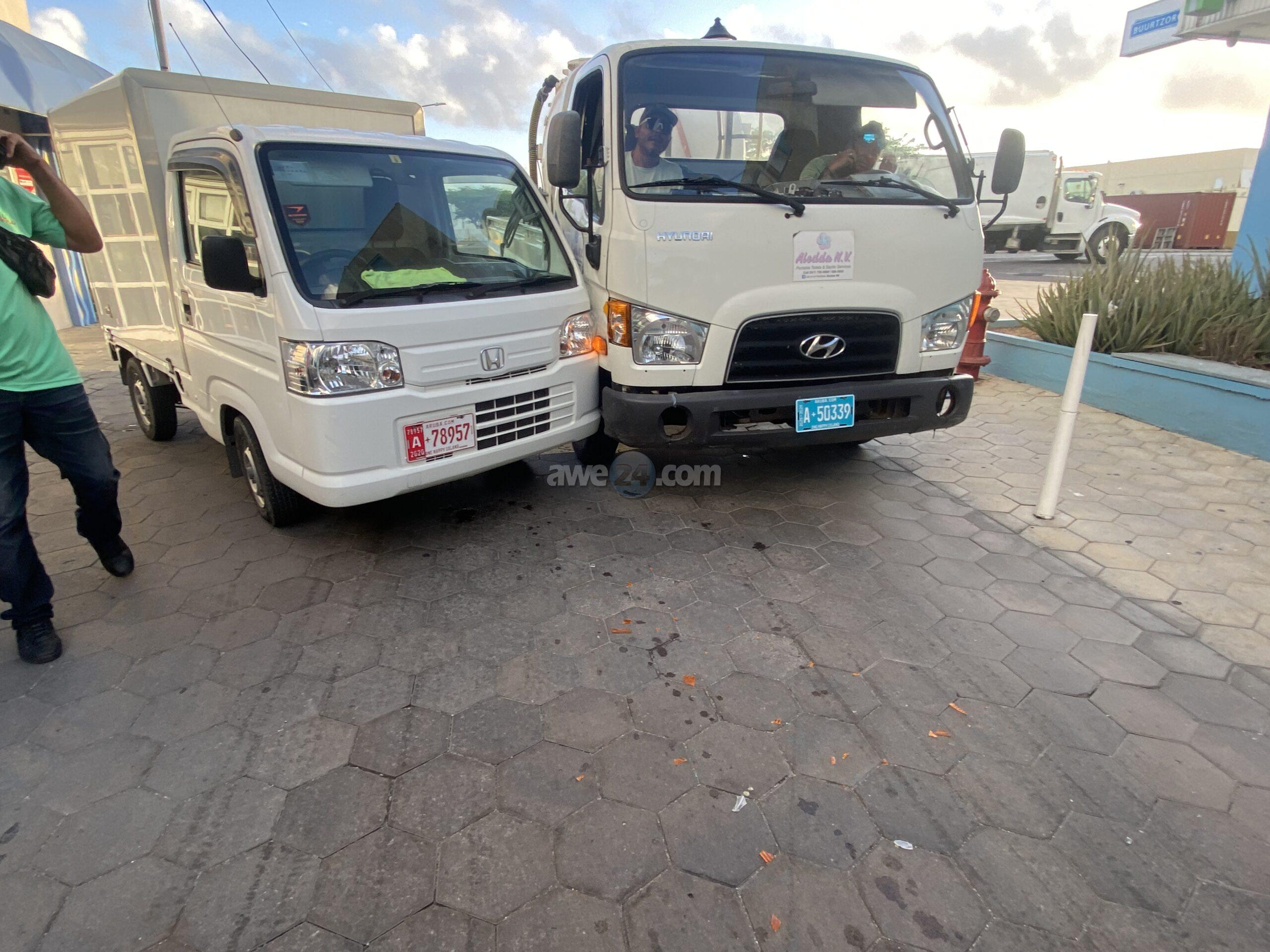 Dialuna mainta a drenta informe di un accidente na Zandstraat, mesora nos reportero a presenta na e sitio. Na nos yegada a bin compronde cu e chauffeur di un box-pickup a bay subi caminda pero no a mira e truck ta bin y a subi y nan a dal den otro. Entre nan mes a regla e asunto.