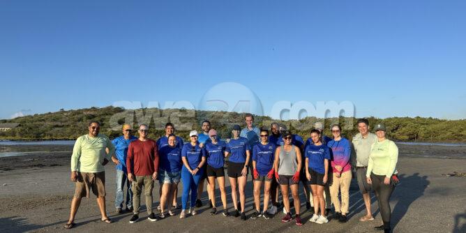 Despues di e sesion educativo, e team di Bucuti & Tara a bishita Spaans Lagoen dia 24 di Juli pa participa den un actividad di conservacion critico dirihi pa ACF. E team di ACF, 19 empleadonan di Bucuti dedica y boluntario a pone man na obra pa yuda coba canalnan pa mata di mangel pa asina fluho di awa por yega nan y nan por sigui crece y florece.
