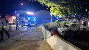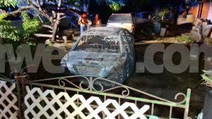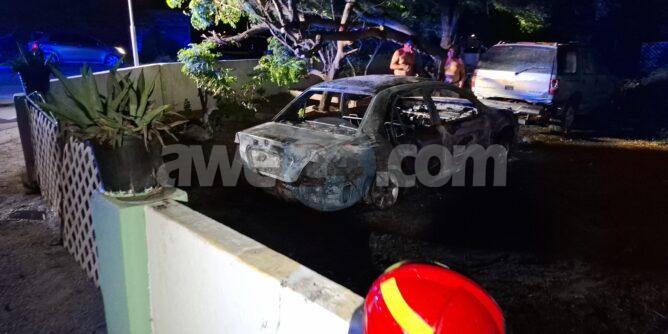 Diasabra madruga a drenta informe di cu tin un auto na candela den un cura di cas, mesora a dirigi bomberonan na e sitio. Na nan yegada a nota cu aki ta trata di un Mitsubishi Lancer para den cura sin number cual ya caba tabata full na candela y tambe a causa daño na un otro auto su dilanti. Bomberonan a logra domina y paga e candela.