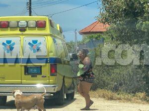 Diadomingo merdia a drenta informe di cu na Kibaima un dama a corta su man y ta sangrando, mesora a dirigi un ambulans na e sitio. Na yegada di e ambulans a bin compronde cu durante di un discucion e dama a pasa su man door di un glas y ela corta su mes, nan a atende e dama y a conseh’e pa e bay hospital cu su mesun transporte.