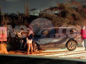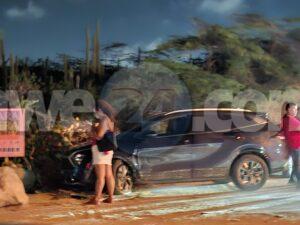 Dialuna madruga a drenta informe di un accidente na Calabas, mesora a dirigi un patruya na e sitio. Na yegada di e patruya a bin compronde cu aki ta trata di un accidente unda e chauffeur pa un motibo of otro a bay na banda drechi baha for di caminda dal riba un piedra grandi. Debi na e fuerte impacto e auto a haya basta sla y no por a sigui core riba su mesun forsa. Afortunadamente ningun persona a resulta herida.